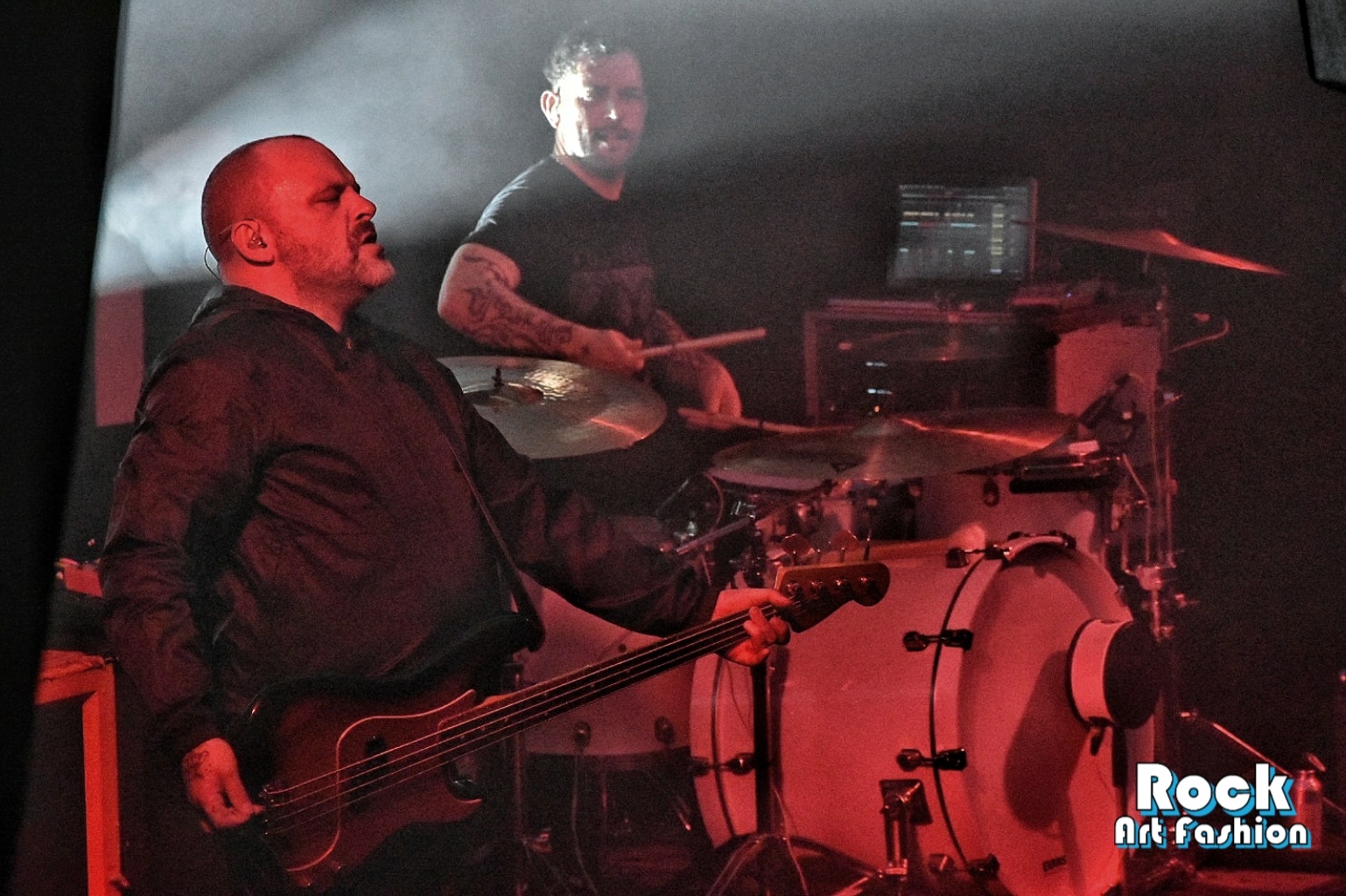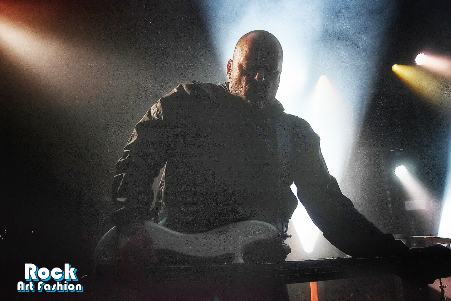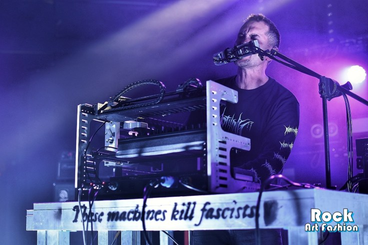 Le son, dark et lourd, un peu apocalyptique. Ce mix de doom, métal indu, noise et électro est assez spécial, contrasté et très futuriste mais j’avoue, ça casse un peu les oreilles. La scène sombre est balayée de temps en temps par de grands spots aveuglants. Une reprise de « Give me a reason » de Portishead est très apprécié par le publique.