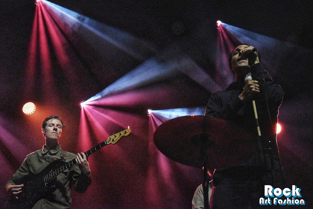 Under the warm ovations of the audience: Paul Banks (guitar-vocals) launches a Hello and big smiles, Daniel Kessler (guitar) raises his glass towards the audience as “Cheers”. We quickly notice the absence of Sam Fogarino on drums. Indeed, for a few concerts, the drummer is sick.