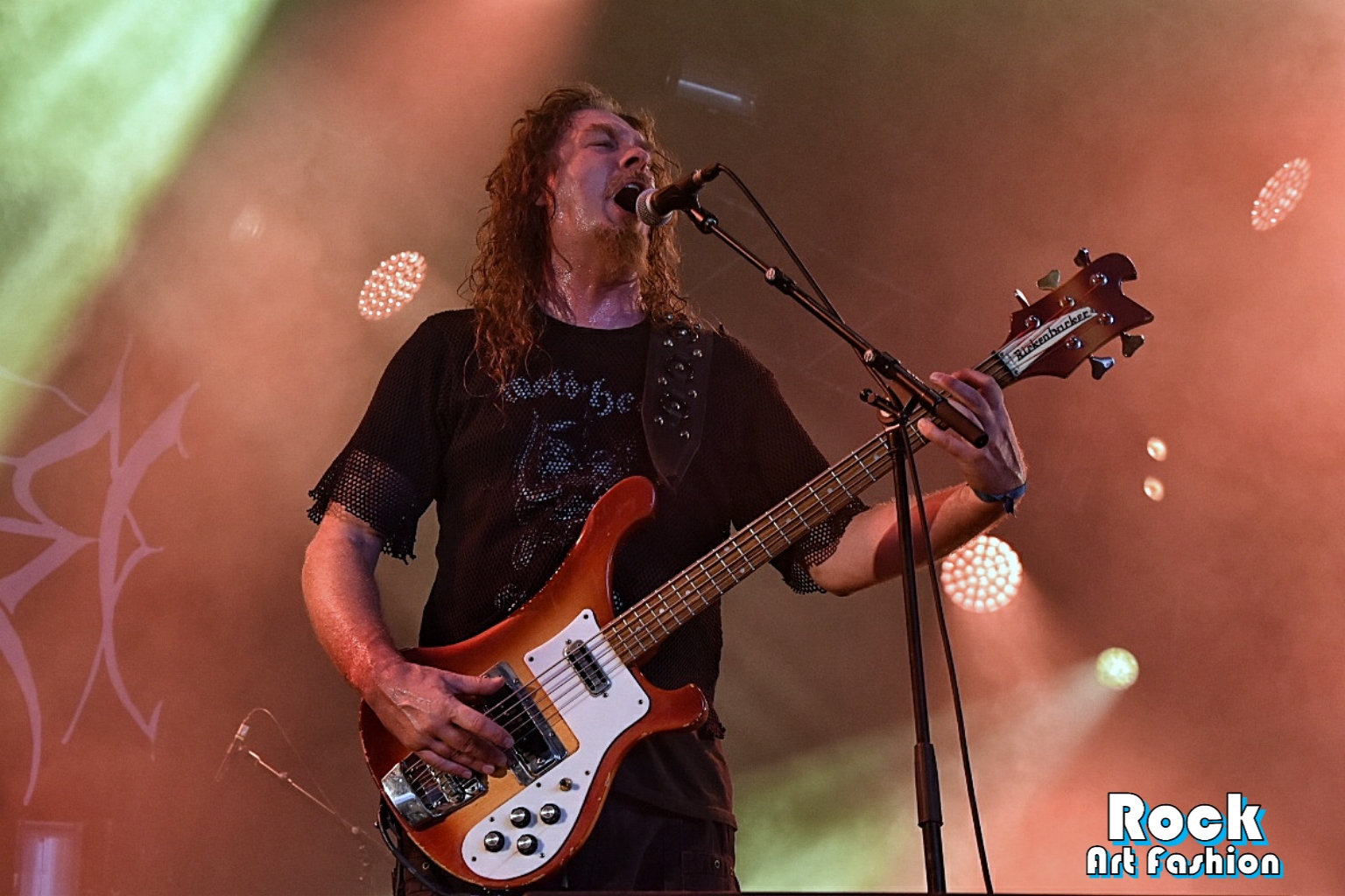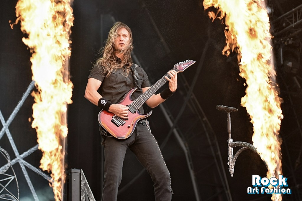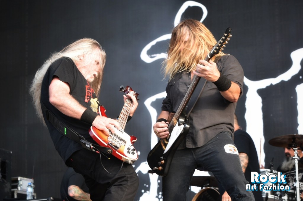 Je ne connais pas du tout le groupe suédois sinon la bio fournie par le festival qui les présente comme comme le groupe « qui a gravi les échelons à la vitesse grand V ». C’est plutôt une belle surprise. Death metal mélodique et avec une voix sépulcrale posé sur des grands riffs heavy classiques addictifs. Le groove est accrocheur et efficace. Dommage que le groupe évolue dans un grand brouillard, pas facile de capter leurs visages expressifs peints en noir et blanc.