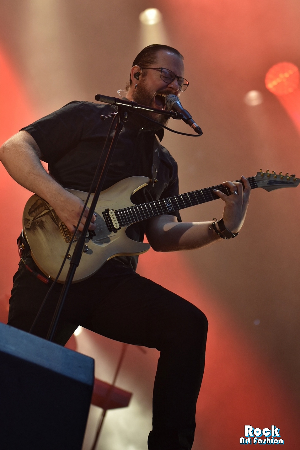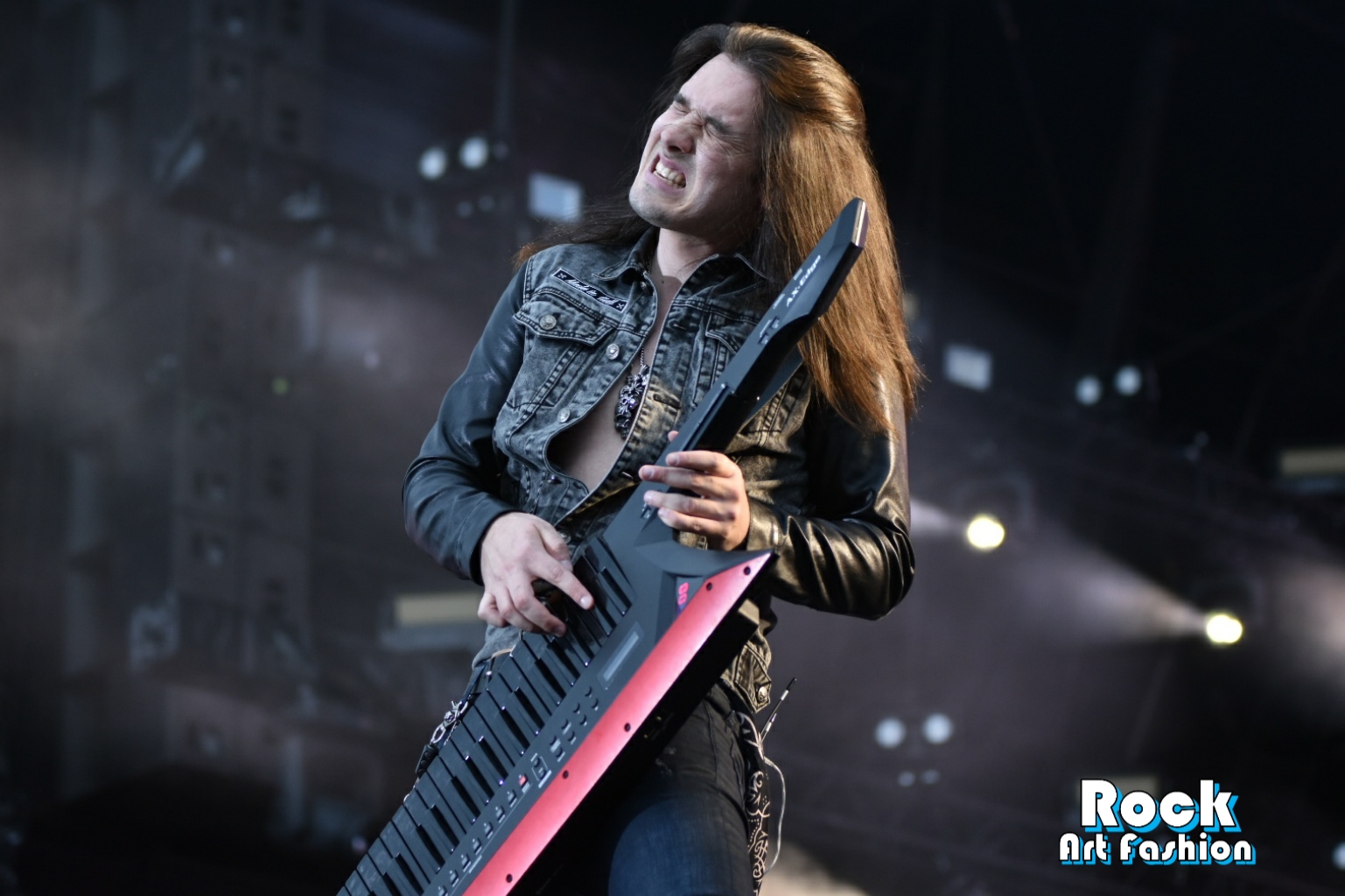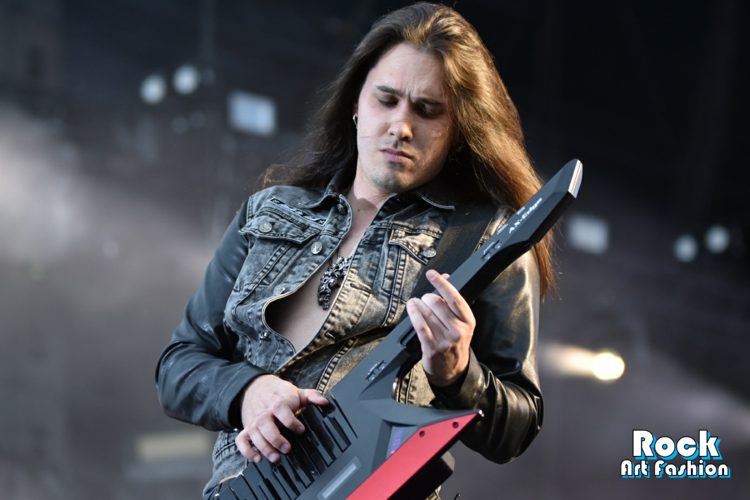 Epica’s symphonic metal enchants us. The voice duo – the charming mezzo-soprano Simone Simons and guitarist/singer Mark Janssen works wonderfully. Complicit stage play, symphonic parts contrast with the energetic growls, the effective riffs, impressive keyboards of all kinds: portable or on rails, to which we add the pyros, the gigantic metal snakes on stage, the Dutch band offers a fantastic performance.