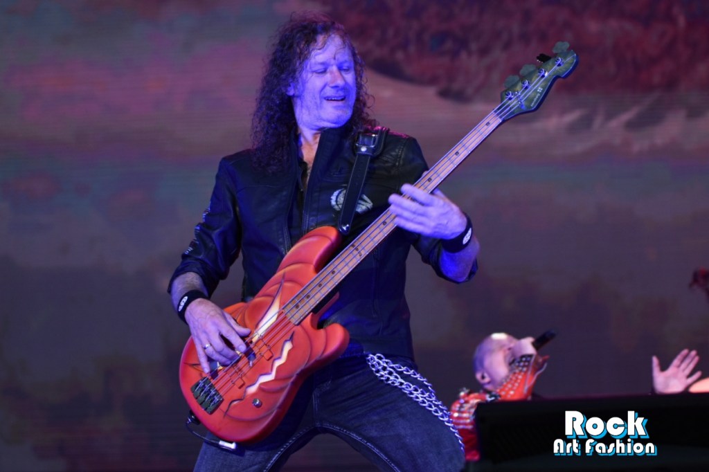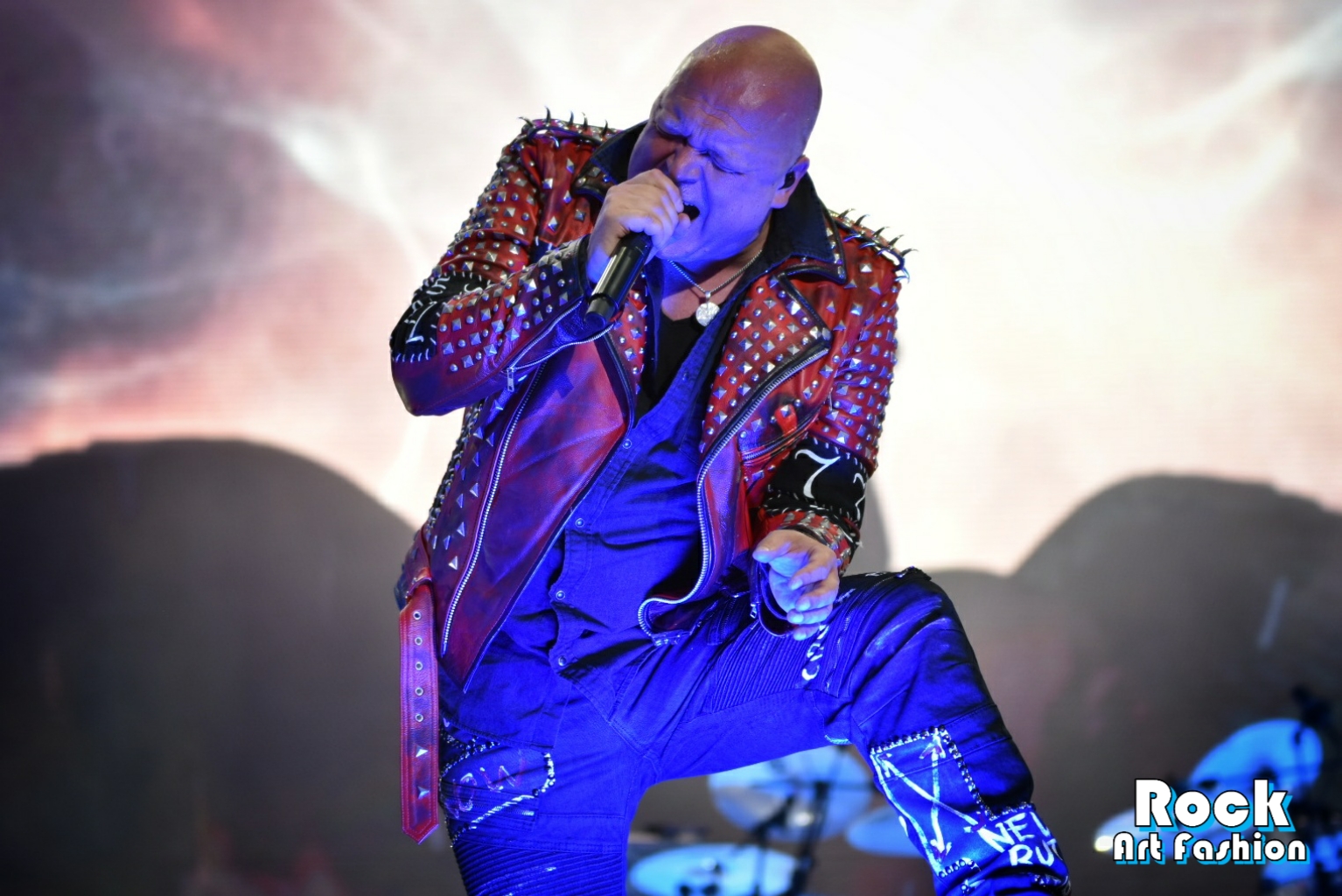 Un Rob Halford époustouflant. Même si de fois, il semble un peu fatigué, Il n’a absolument rien perdu de ses capacités vocales impressionnantes au point qu’on se demande s’il n’y a pas une astuce technologique quelque part. A quoi on rajoute évidement ses tenues vestimentaires spectaculaires : les vestes cloutées en cuir, les manteaux en jean.