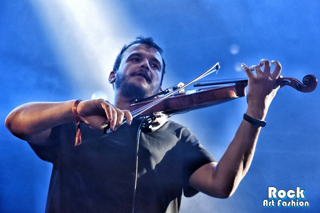 On the stage of Temple 19 musicians: the 8 permanent members of the band accompanied by 3 backing vocals and 8 traditional musicians (violins, flutes, cellos, trumpets). Metalcore riffs mixed with violins to which are added rhythmic percussions, synths and many other different sounds: flutes, trumpets, cello. That’s the strength of this live. Songs are terribly effective that appeal enormously to the public.
