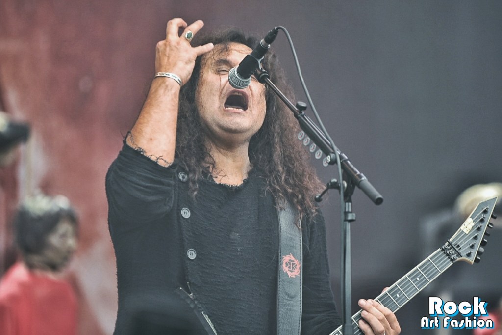Kreator garde fièrement sa réputation. Sous une pluie embêtante, les légendes du trash métal allemand délivre un show excellent. Le groupe mené par le talentueux Mille Petrozza depuis 40 ans est au sommet de sa forme. Le show est millimétré : la cadence est infernale, les riffs tranchants et la voix aigüe, en colère. Sur la scène des « cadavres » pendues et empalés, des flammes, etmêmeles confettis la fin du set.