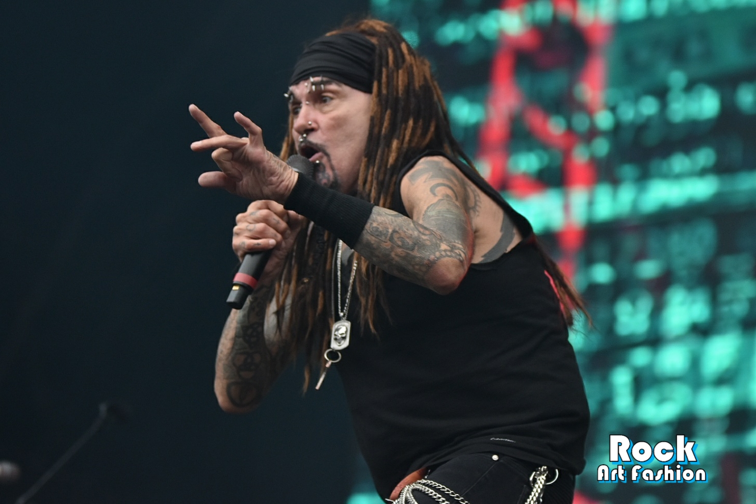 Al Jourgensen and his acolytes start strong with the breath-taking Breathe followed closely by The Missing. No matter the rain, the show is more and more powerful. The veterans of industrial metal are in Olympic shape. The energy of the band is amazing, the sounds excellent. The screen behind broadcasts mind-blowing images.