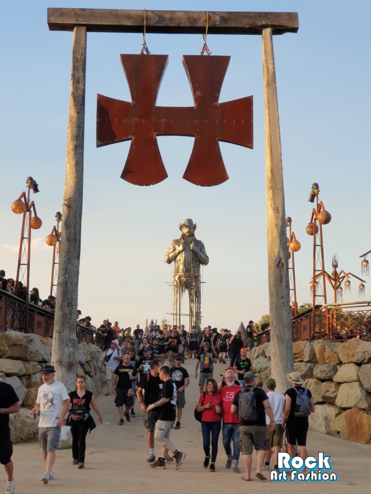 Now the concerts of the day … On the way to the mainstage, a small stop at the Temple where the Czechs of Cult Of Fire perform. Unusual scenography for a metal concert… a singer and the two musicians who accompany him sit on “thrones”, faces totally covered by a black fabric. The smell of encircled is very strong, it seems that we attend a mass in a church or ritual.