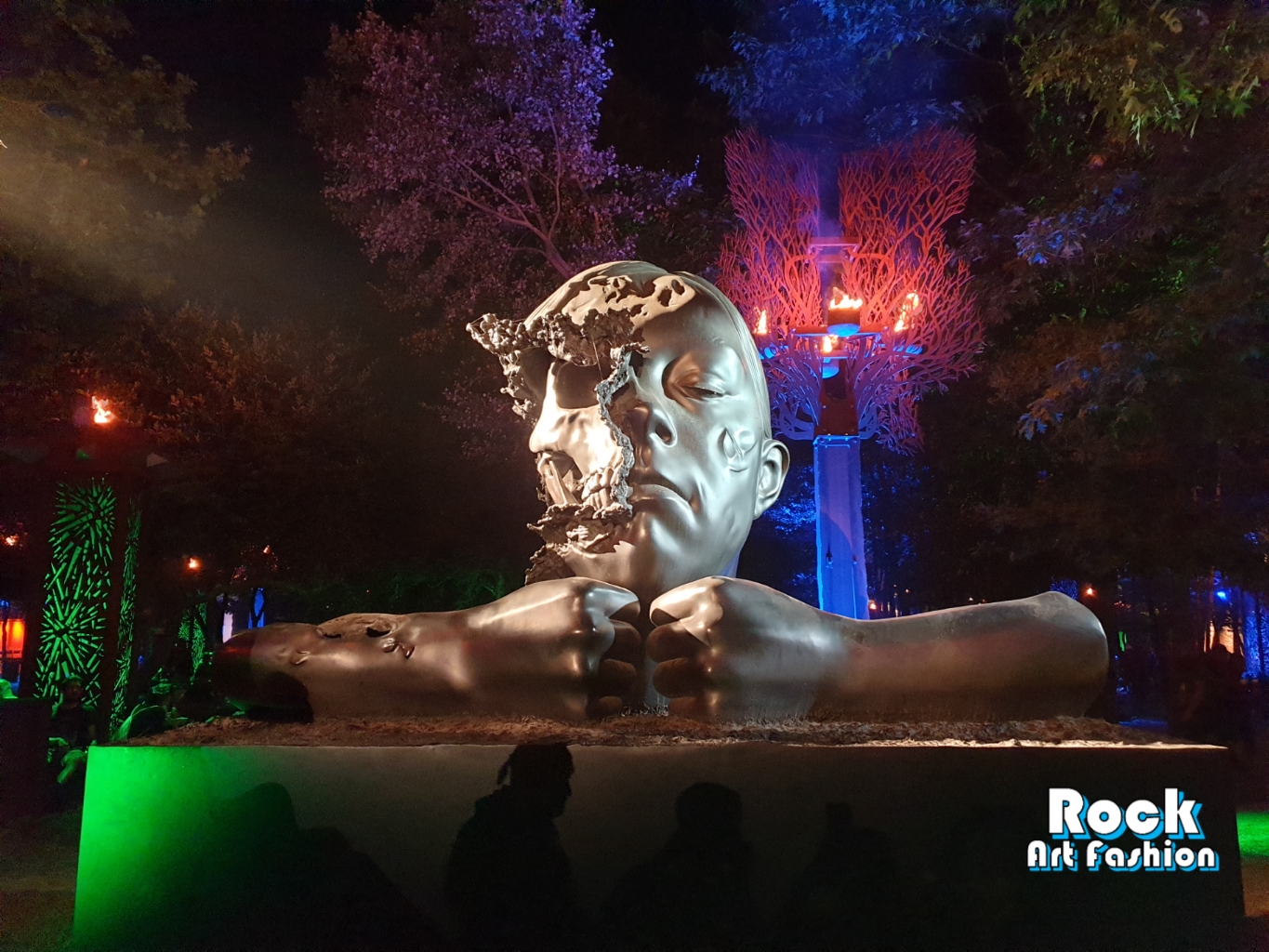 On a sillonné les allées ombragées, on a retrouvé avec plaisir les fontaines, les arbres, les bars container en fer qui crache du feu et surtout, on a admiré les nouvelles sculptures gigantesques – notamment l’imposante statue de Lemmy Kilmister (12 m de hauteur, 5 tonnes d’acier) et celle monumentale du corbeau.