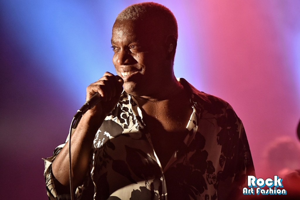 Il bouge en long et en large de la scène. Ses sauts, contorsions, ses déhanchés sexy à la James Brown sont ravisent l’audience. Une forme athlétique ! Sa chemise fleurie sera complétement mouillée après quelques chansons.