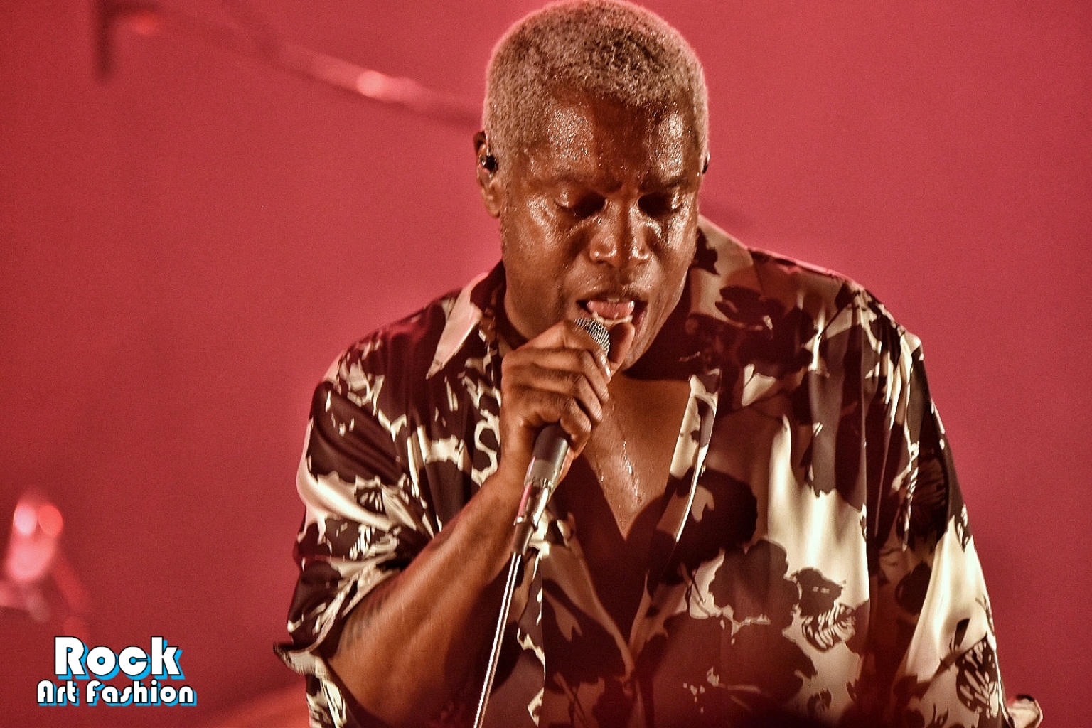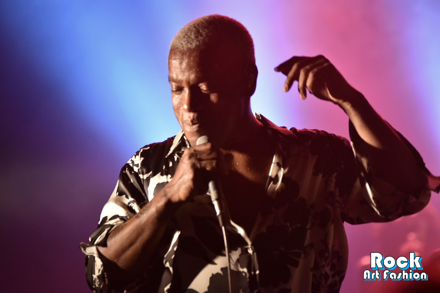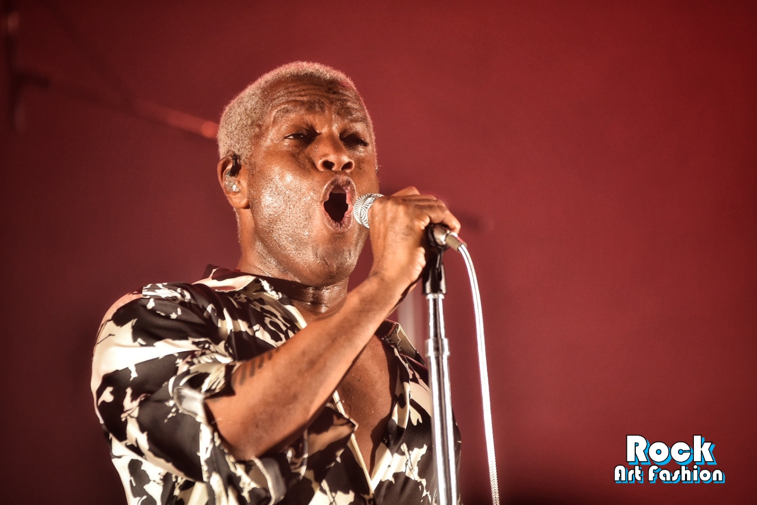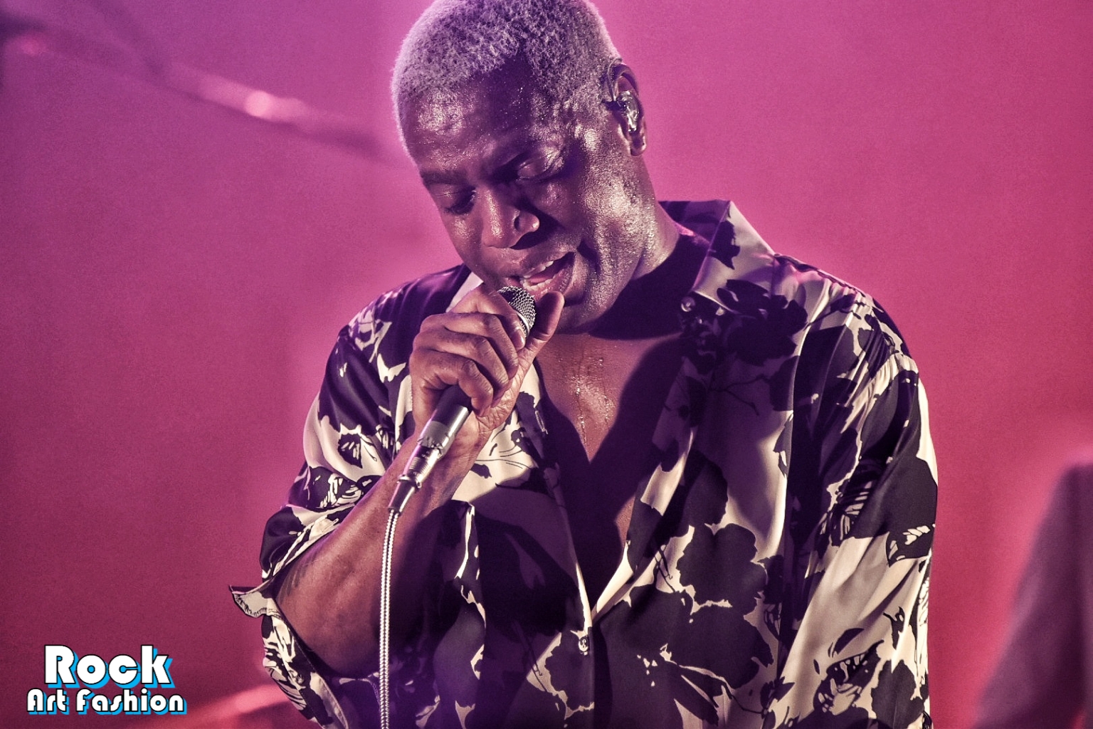 Il bouge en long et en large de la scène. Ses sauts, contorsions, ses déhanchés sexy à la James Brown sont ravisent l’audience. Une forme athlétique ! Sa chemise fleurie sera complétement mouillée après quelques chansons.