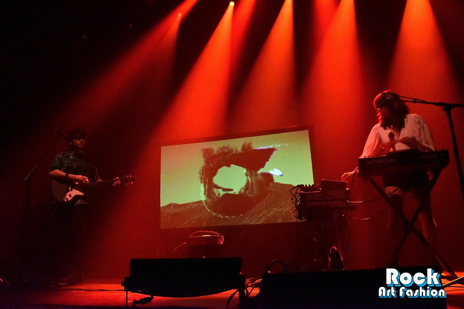 Arriving at the venue, we learn that it is The KVB who starts the evening. Quick search on the net and I find out that it is an indie rock duo from London. Formed by Nicholas Wood (Guitars, Vocals) and Kat Day (Keyboards, Vocals), the British band already released 8 albums, the latest one, Unity in 2021.