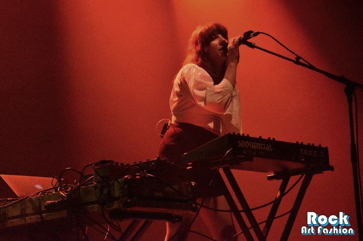 A 20h, leur show démarré devant une fosse rempli à moitié. Des sonorités post punk intègrent des éléments électro d’influence cold wave et showgaze. Des morceaux plus énergiques alternent avec ceux plus aériennes et contemplatives. Les chansons sont catchy, dansantes. Les mélodies sont envoutantes. La sono est très bonne, la scénographie est minimaliste.
