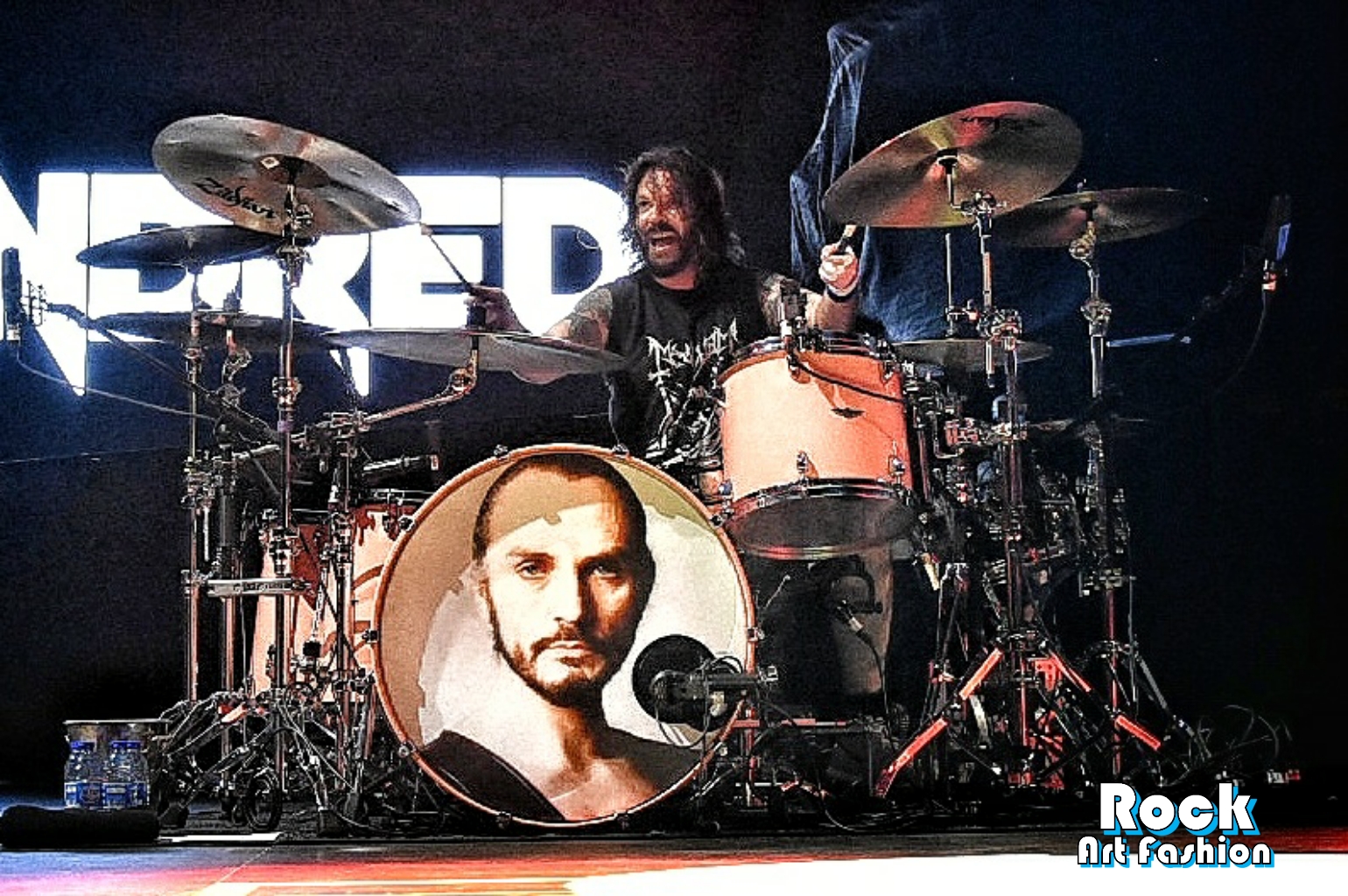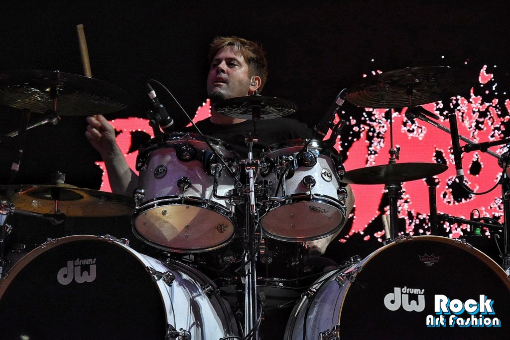 La scène est impressionnante. La batterie surélevée est entourée de téléviseurs vintages empilées. Un mur d’écrans géants derrières passe en direct les images du groupe, du public, des photos, des dessins animés. Les visuels, les lumières et la sono claire et puissante sont tous simplement parfaits. Du grand spectacle !