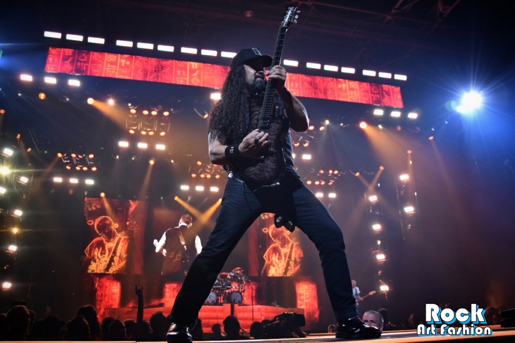 Le show est énergique, les musiciens sont en forme et font le maximum pour chauffer le public. Le nouveau frontman “DL”Daniel Laskiewicz, se produit pour la première fois en France. Il est très dynamique et communicatif et profite largement de l’avancée imposante de la scène qui dépasse le milieu de la salle, pour s’approcher plus près de public. Le guitariste Max Karon, très souriant, descendra même dans la fosse pour jouer quelques riffs.