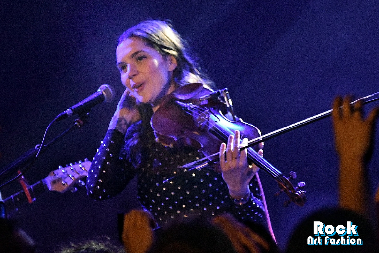 La chanteuse, compositrice et multiinstrumentiste KAYLEIGH GOLDSWORTHY qui a eu la mission d’ouvrir ce soir, vient justement de terminer son dernier morceau et quitte la scène sous les ovations du public. Visiblement son set a connu un grand succès. Dommage que je l’aie raté.
