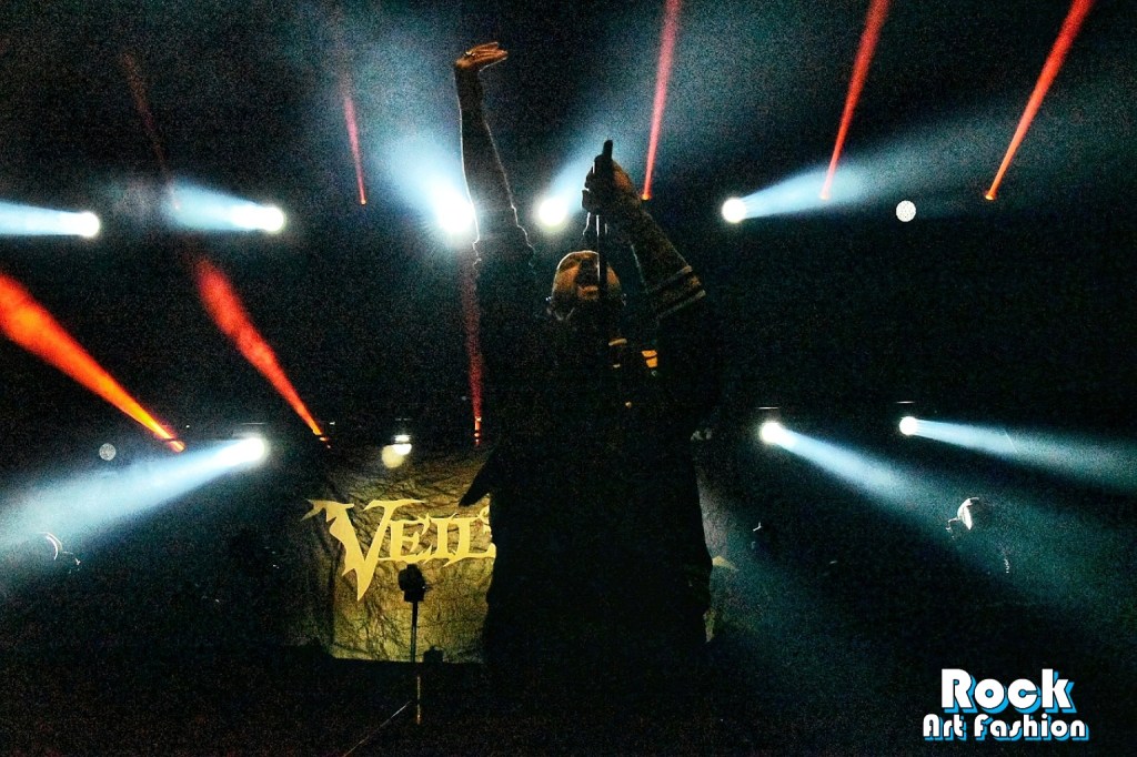 For the rumblings of VALLEY OF DISEASE out of the new album slam, Johannes appears dressed in a long coat. The red light invades the scene. It’s a dark, destructive song. The riffs are very fast, the bass growls and the drums are punchy. Demonic voice, manic look, monumental poses, singer seems to come from another world. Impressive. The roars of the crowd continue.