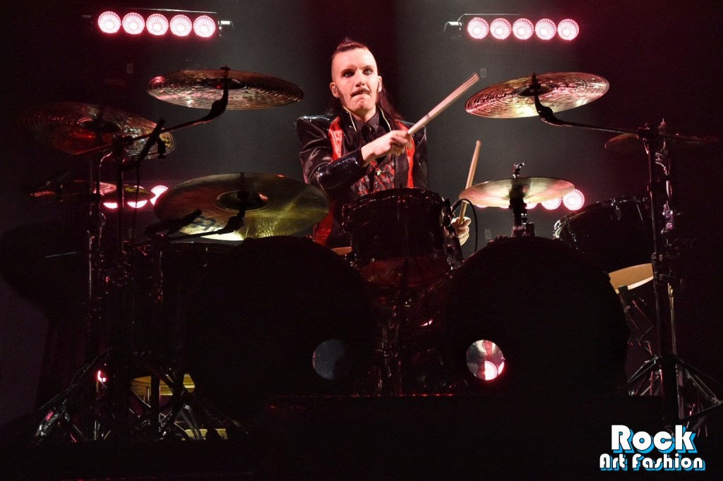 When it’s finally time for AVATAR to enter the stage, we feel that the audience is more than ready. The lights go out to the loud cheers of the crowd. Bells sound, smoke invades the stage and drummer John Alfredsson appears on drums. Illuminated by several spots, he plays the first rhythms of Dance Devil Dance, in a very robotic and mechanical way, like an automaton of the funfair.
