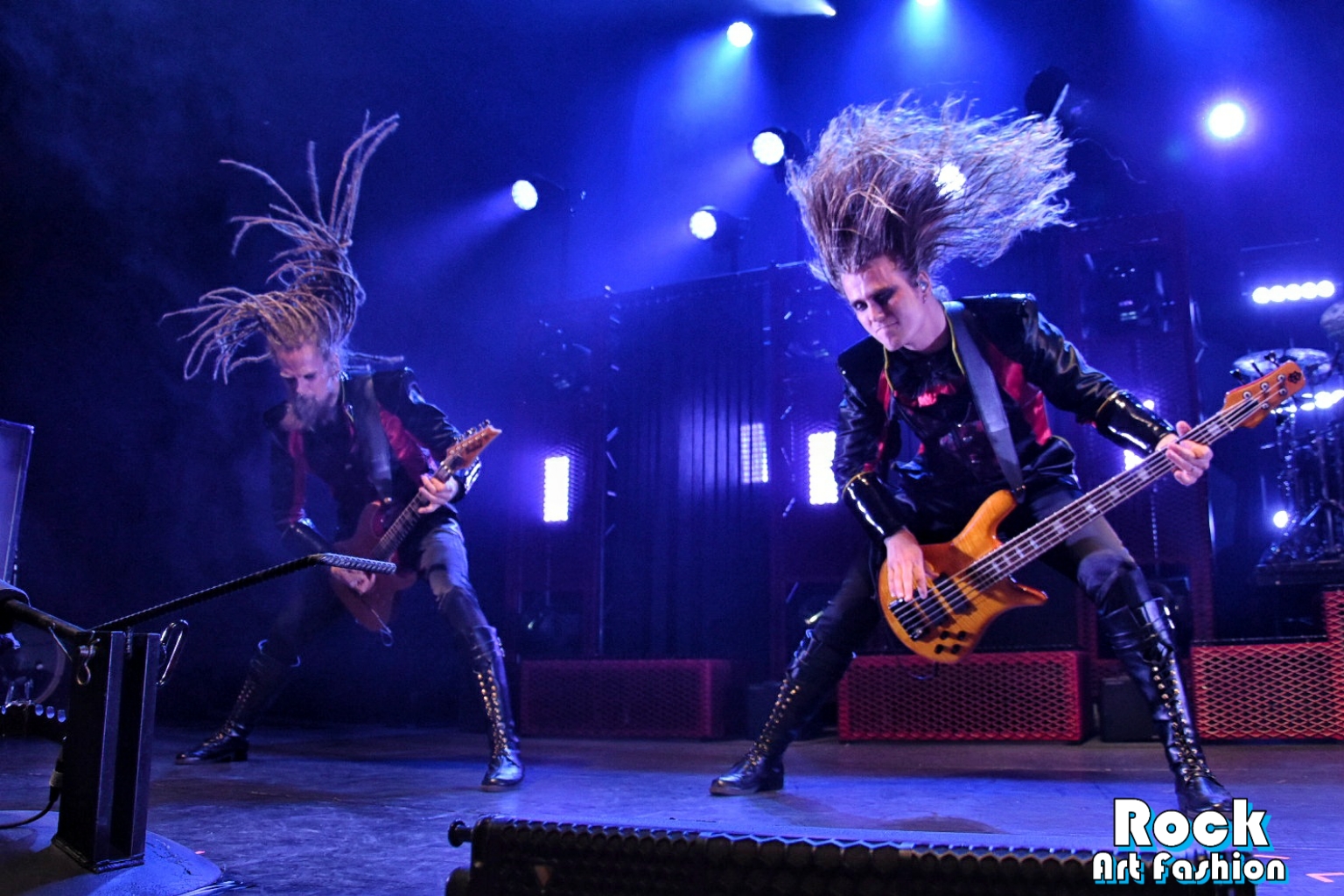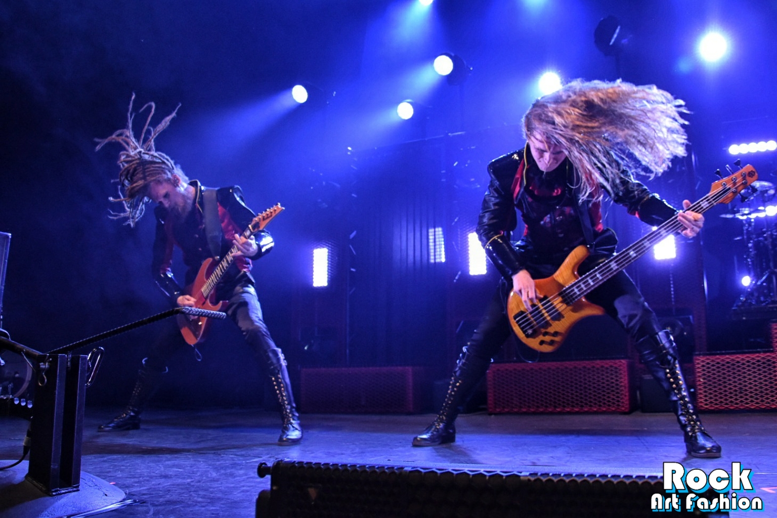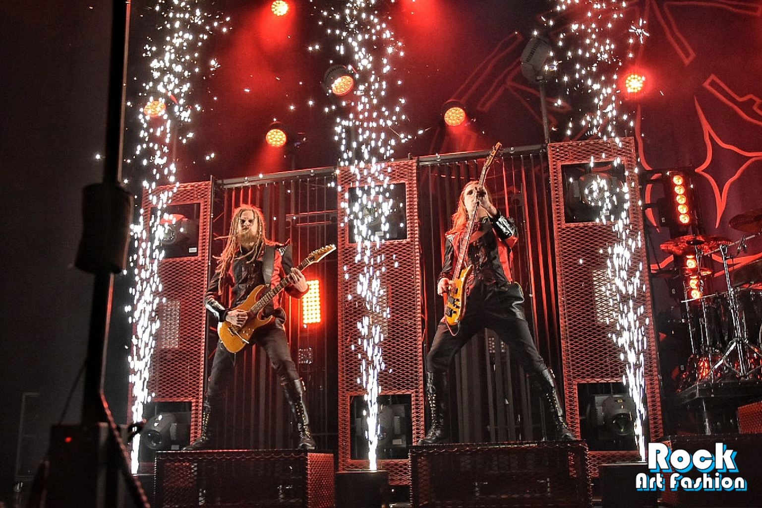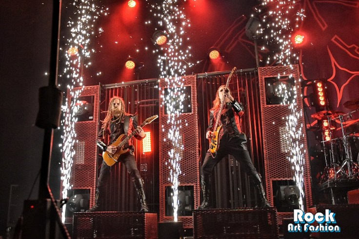 Des colonnes d’étincelles font leur apparition et les tourbillons de headbaging coordonnés entrent en scène. Le son est massif, les lumières magnifiques et les costumes fantastiques.