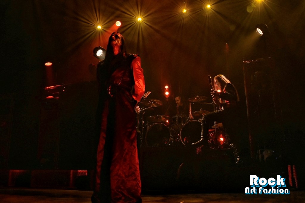 KASSOGTHA‘s style is somewhere between metalcore and prog death metal. The band is very dynamic on stage with a frontwoman obviously very happy to play at the Olympia. Overflowing with energy, she walks the stage non-stop and the rest of the band (two guitarists, a bassist, a drummer) gives their all to warm up the room: headbanging, solos, many changes of places on stage.