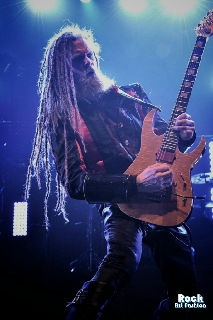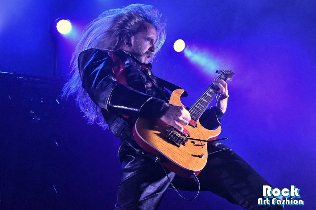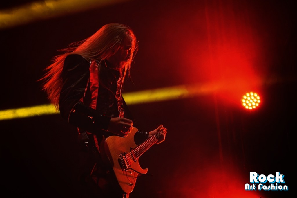 Moment théâtral avec Jonas « Kungen » Jarlsby qui arrive sur scène habillé de sa tenue royale, cape et couronne, avant de marteler le riff d’ouverture de la chanson A Statue Of The King accueilli par des grandes acclamations et des applaudissements.
