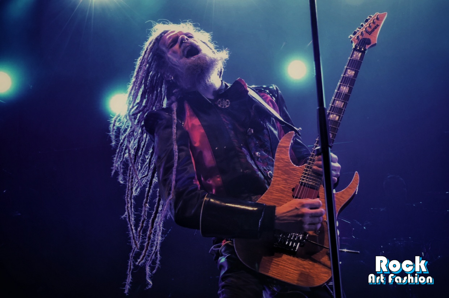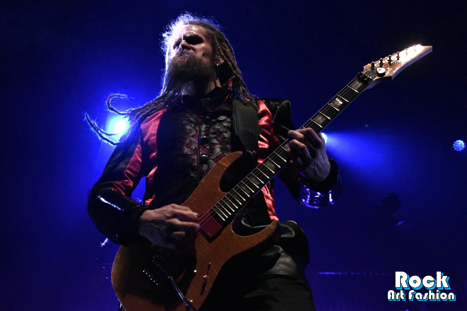 Theatrical moment with Jonas “Gungen” Jarlsby who arrives on stage dressed in his royal outfit, cape and crown, before hammering the opening riff of the song A Statue Of The King greeted by big cheers and applause.