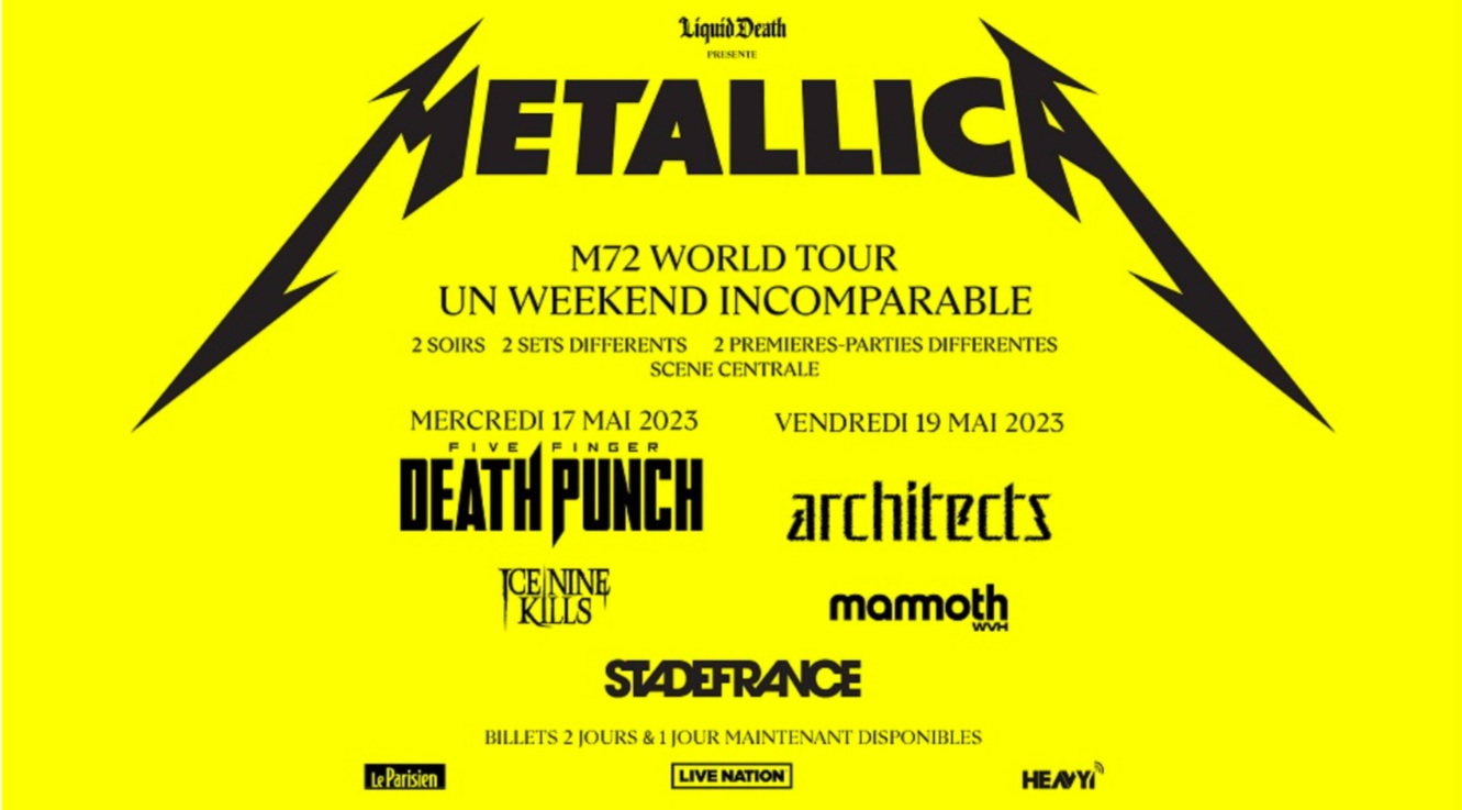 La semaine prochaine, célébrons METALLICA !!! Un mois après la sortie de leur fantastique nouvel album 72 Seasons, les Four Horsemen vont prendrele contrôle de Paris les 17, 18 et 19 mai !
