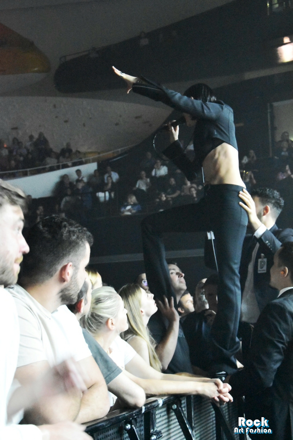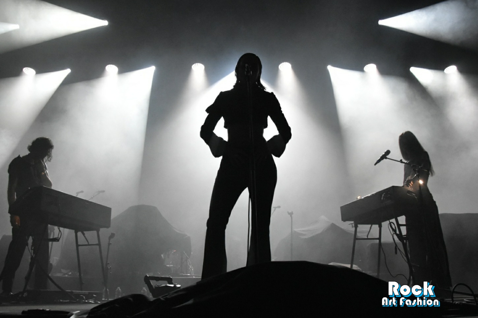 Ok, so let’s talk about the concerts now: The evening starts with the show of the actress, composer and singer, Jehnny Beth, accompanied by her musicians (Johnny Hostile – guitar, keyboard and Malvina – vocals, keyboard). Very accustomed to open for big bans – we saw it last year opening for PLACEBO at Accor Arena and recently, opening for DEPECHE MODE at the Stade de France – here she is opening for INTERPOL, a band she loves and has been following for a long time, as she told us in the beginning of the concert.