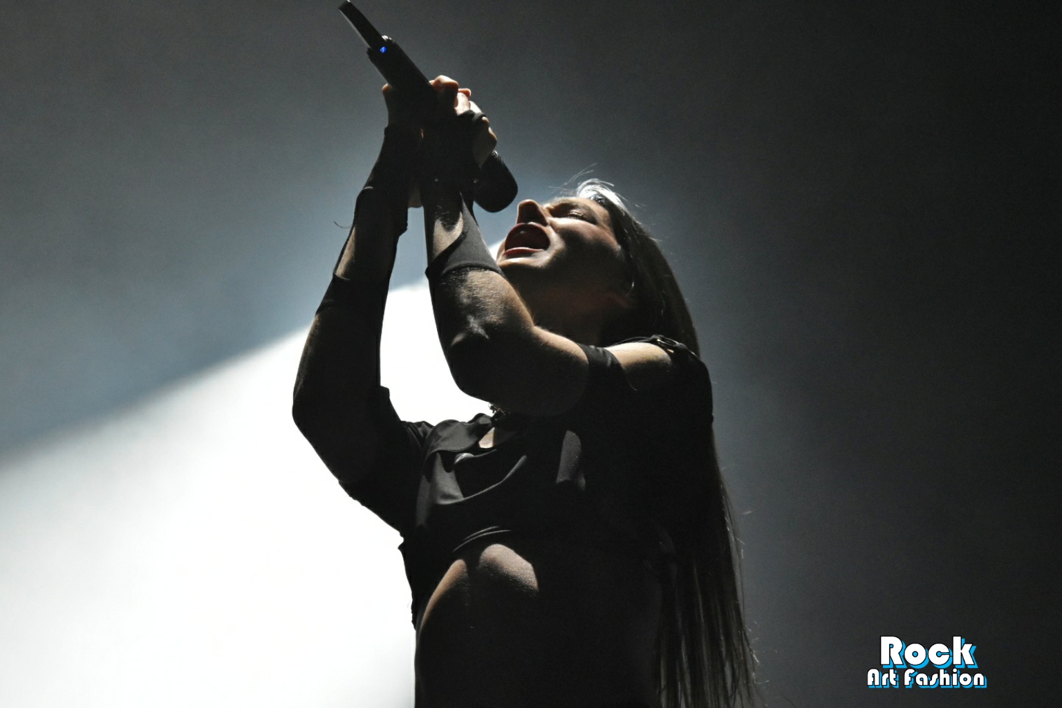 Très habituée des premières parties de grands groupes – on l’a vu l’année dernière en première partie de PLACEBO à Accor Arena et récemment, en première partie de DEPECHE MODE au Stade de France – la voilà donc ouvrir pour INTERPOL, un groupe qu’elle aime et qu’elle suit depuis longtemps, comme elle nous l’avoue dès le début du concert.