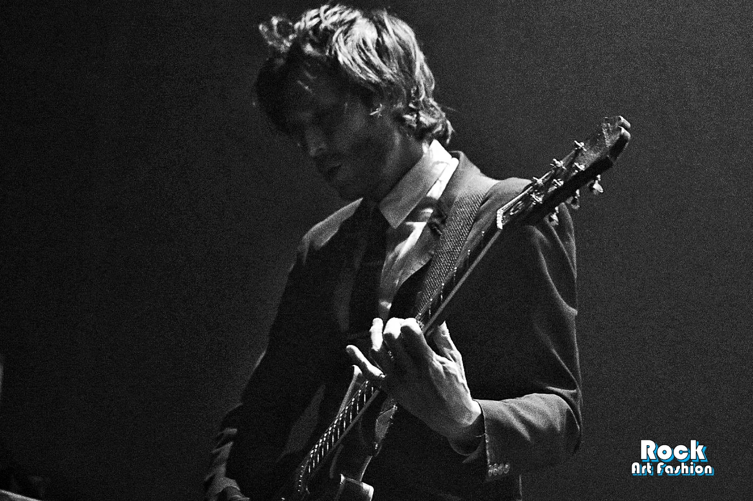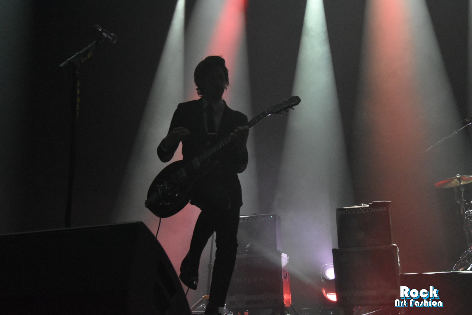 La salle est pleine à craquer quand enfin vers 21h10, INTERPOL arrive sur scène. Sous les ovations chaleureuses du public, des élégantes silhouettes habillées en costumes noirs émergent d’un sombre brouillard : Paul Banks (guitare-chant) Daniel Kessler (guitare) Sam Fogarino (batterie) et leurs chers compagnons de tournée depuis longuement Brian Curtis (claviers et choeurs) et Brad Truax (basse).