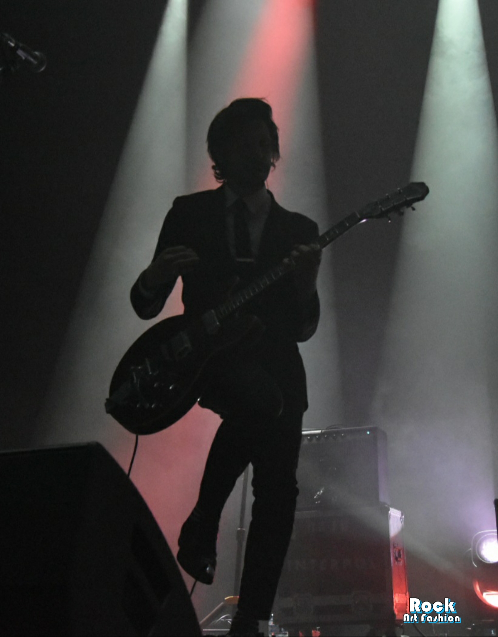 For the first 3 songs, I stay in the photo pit and as usual in the indoor concerts of Interpol, the musicians are in a disturbing semi-darkness, to the dismay of the photographers. Yes, it’s frustrating not to be able to capture a smile, a look, but ultimately, it’s part of their charm and this “moody” atmosphere so particular of their music.