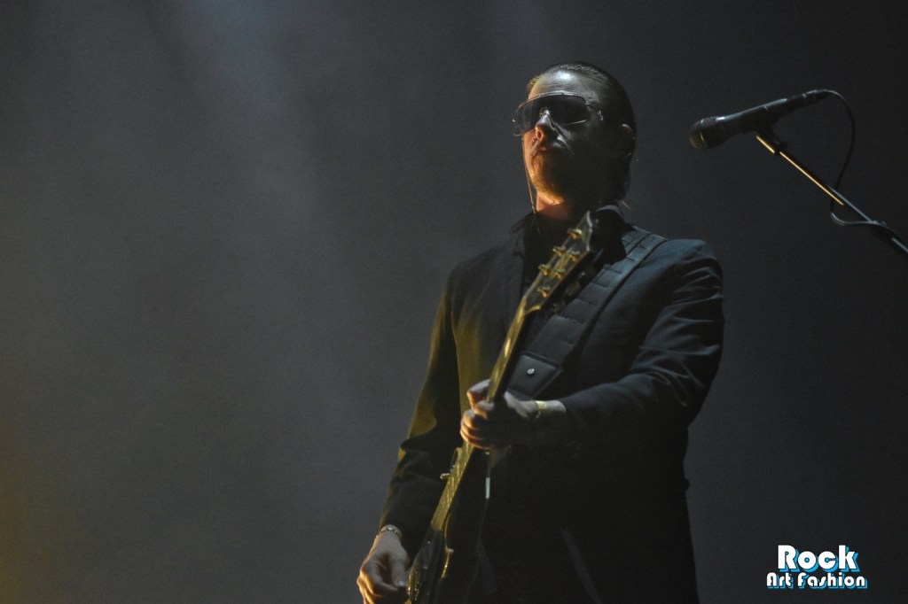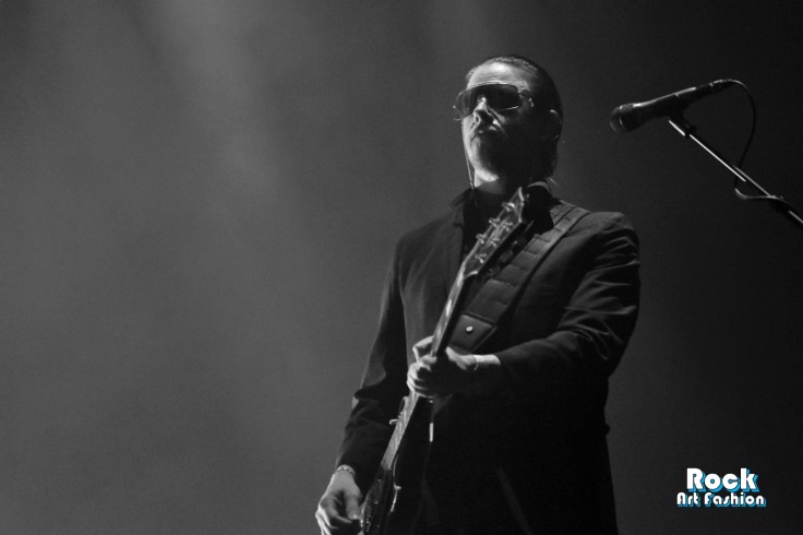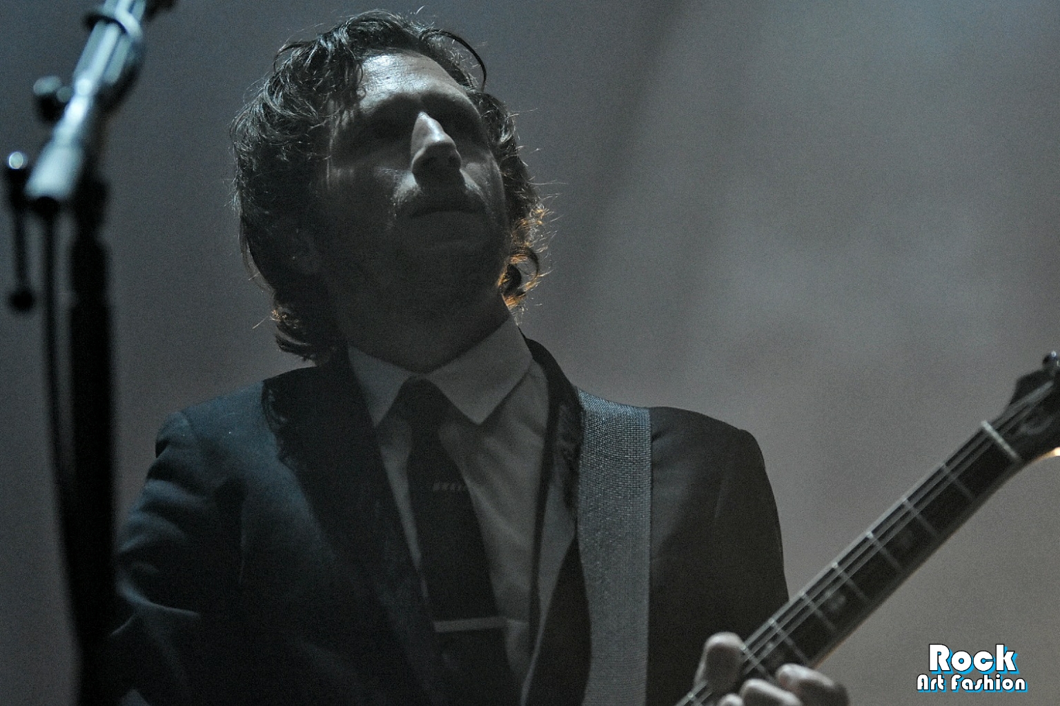Pour le 3 premiers chansons, je reste donc dans le pit photo et comme d’habitude dans les concerts en salle d’Interpol, les musiciens se trouvent dans une semi-obscurité inquiétante, au grand désarroi des photographes. Oui c’est rageant de ne pas pouvoir capter un sourire, un regard, mais finalement cela fait partie de leur charme et de cette ambiance « moody » si particulière de leur musique.