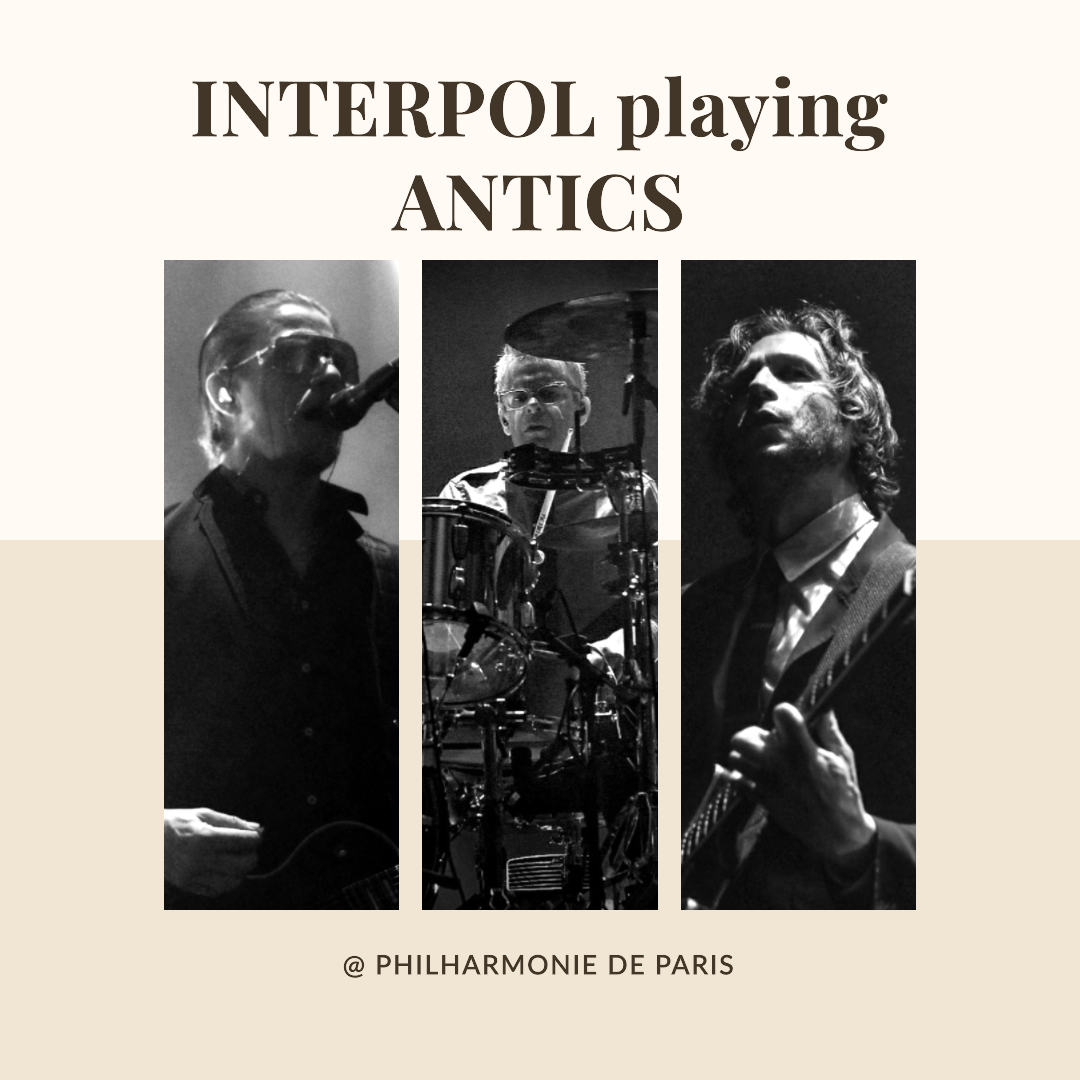 ANTICS est le deuxième album d’INTERPOL. Sorti en 2004, ANTICS reste mon album préfère peut-être parce ce que j’ai découvert la beauté du son et l’élégance du groupe New Yorkais avec cet album. Et quand d’INTERPOL nous invite le 5 juillet 2023, dans un lieu aussi magnifique que prestigieux que la Philharmonie de Paris pour écouter en live ANTICS, interprété dans son intégralité, je vous laisse imaginer mon enthousiasme. Quelle chance ! Car pour l’instant, c’est la seule date de la tournée où on peut assister à un tel évènement.