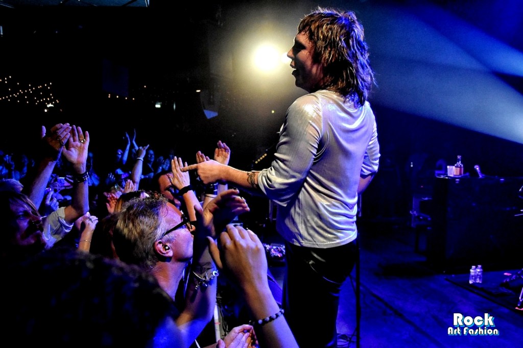 A 20h30 quand c’est le tour de The STRUTS de monter sur scène, la salle est bondée (le concert est annoncé sold out). Je réussi difficilement à me faufiler au premier rang et grâce à quelques fans bienveillantes (que je remercie chaleureusement) j’arrive à trouver une petite place pour pouvoir prendre quelques photos. Il fait vraiment une chaleur extrême. Dans la foule, beaucoup ont sorti les éventails et les ventilateurs de poche.