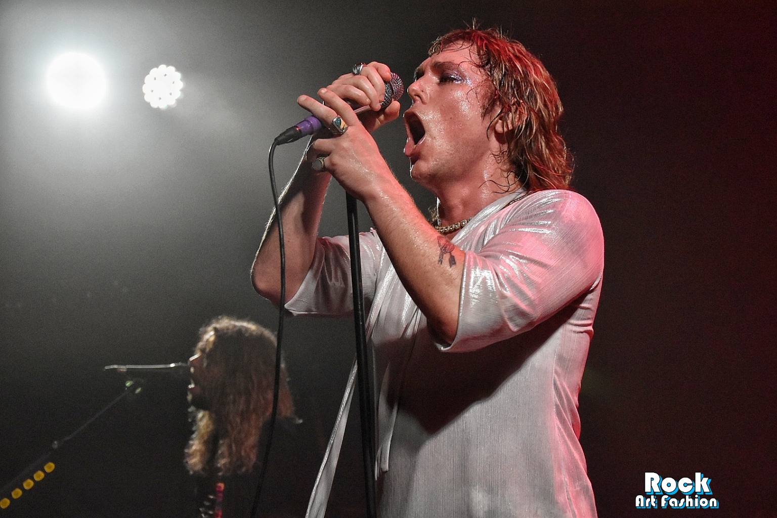 It’s no wonder that with the heat and boundless energy on stage, the whole band is drenched in sweat from the first songs. The singer looks like he took a bucket of water on his head, but nothing prevents him from continuing to move with as much fervour and dynamism.