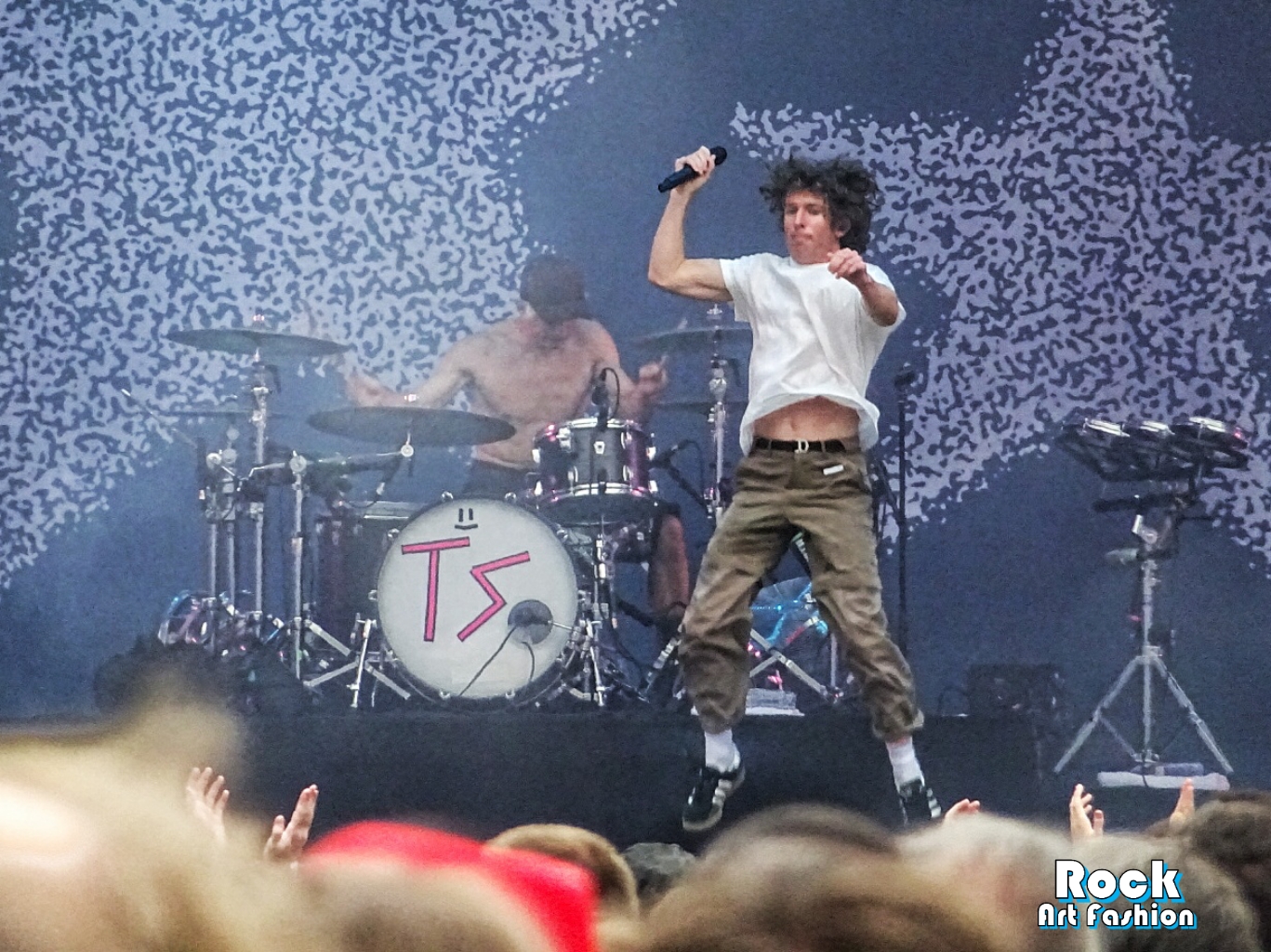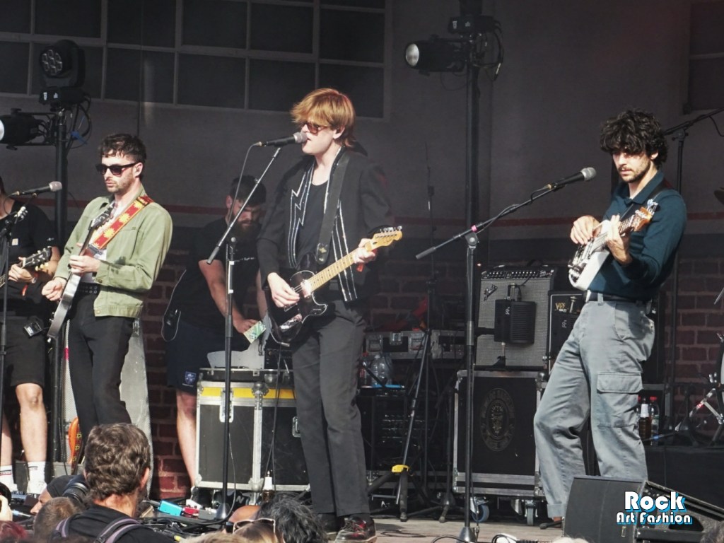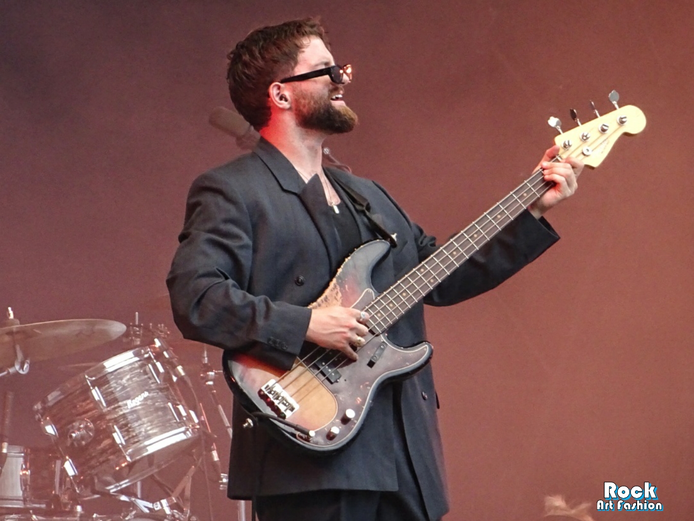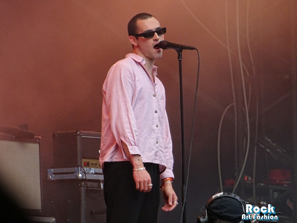 On enchaine avec VIAGRA BOYS et c’est LA REVELATION DU JOUR ! Menés par le charismatique Sebastian Murphy torse nu entièrement couvert de tatouages, le groupe suédois nous offre un show groovy complètement délirant. En plus du front man et de sa façon originale et grave de chanter, il ya le claviériste blond en short en jean tout droit sorti des 80’s, le saxophoniste sexy lui aussi en mini short en cuir, le bassiste qui nous délecte de ses poses théâtrales, le guitariste qui joue très bas avec sa guitare et le batteur qui se déchaine derrière ses fûts. Bref, chaque musicien attire les regards à sa manière, personne ne passe inaperçu.