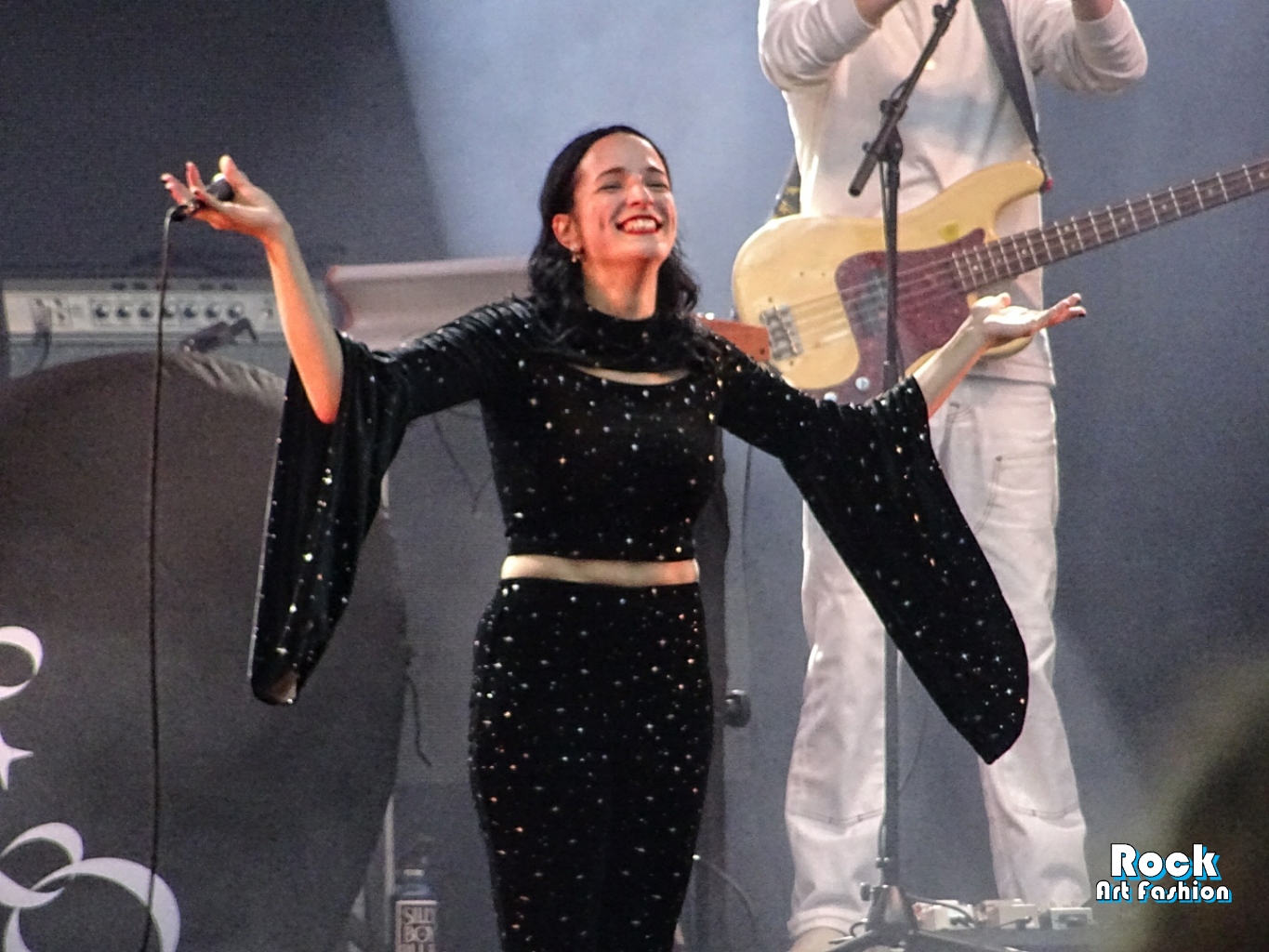 Next stop: the Scene du Bosquet to see Silly Boy Blue that I discovered at Rock En Seine in 2019 on the small Scene of the 4 Winds. If 4 years ago the Nantes singer of her real name Ana Benabdelkarim (her nickname is taken from a title of David Bowie) was all alone on stage with a guitar, a keyboard and a computer now she is surrounded by 3 musicians and perform on a much larger stage.