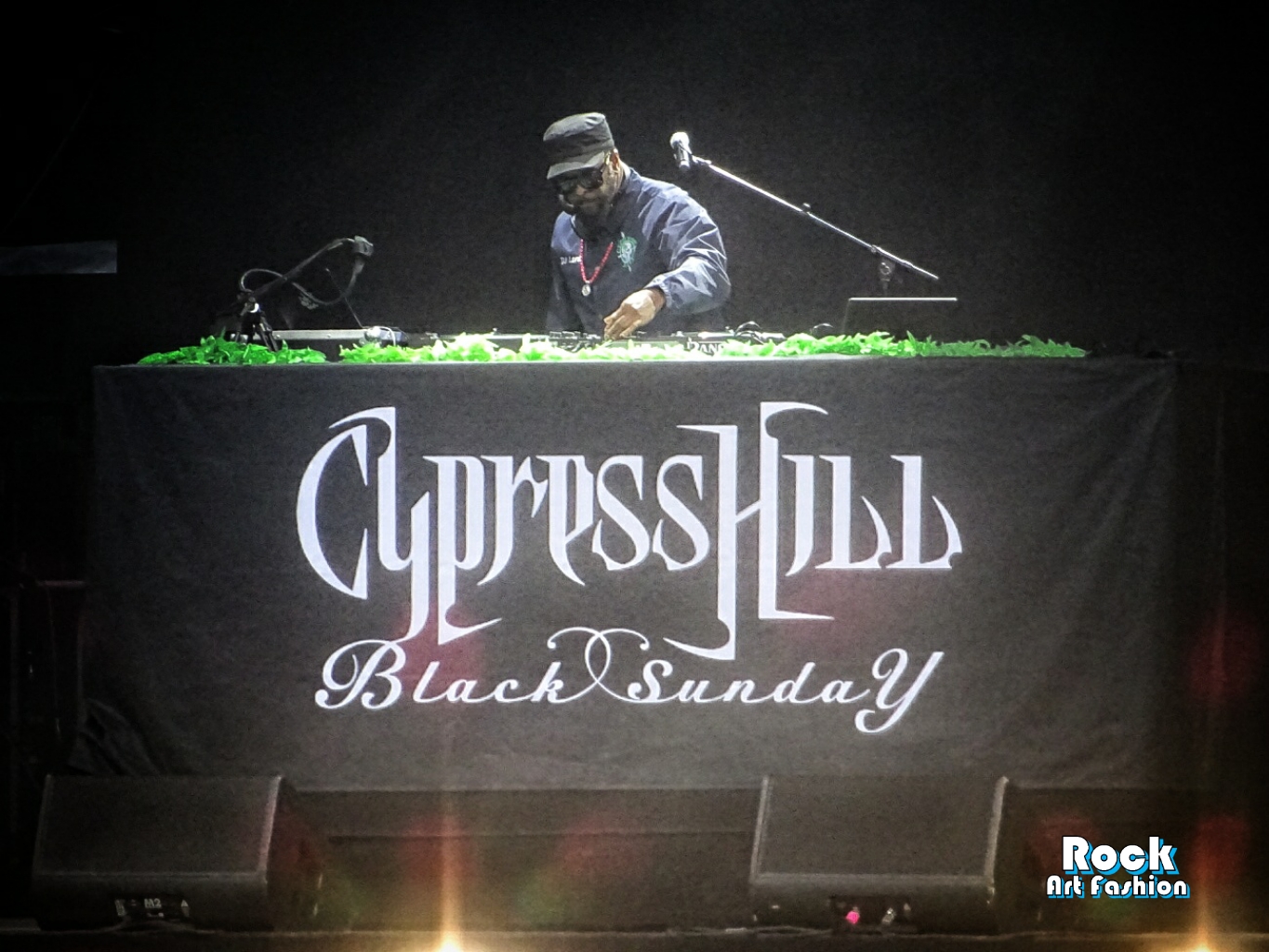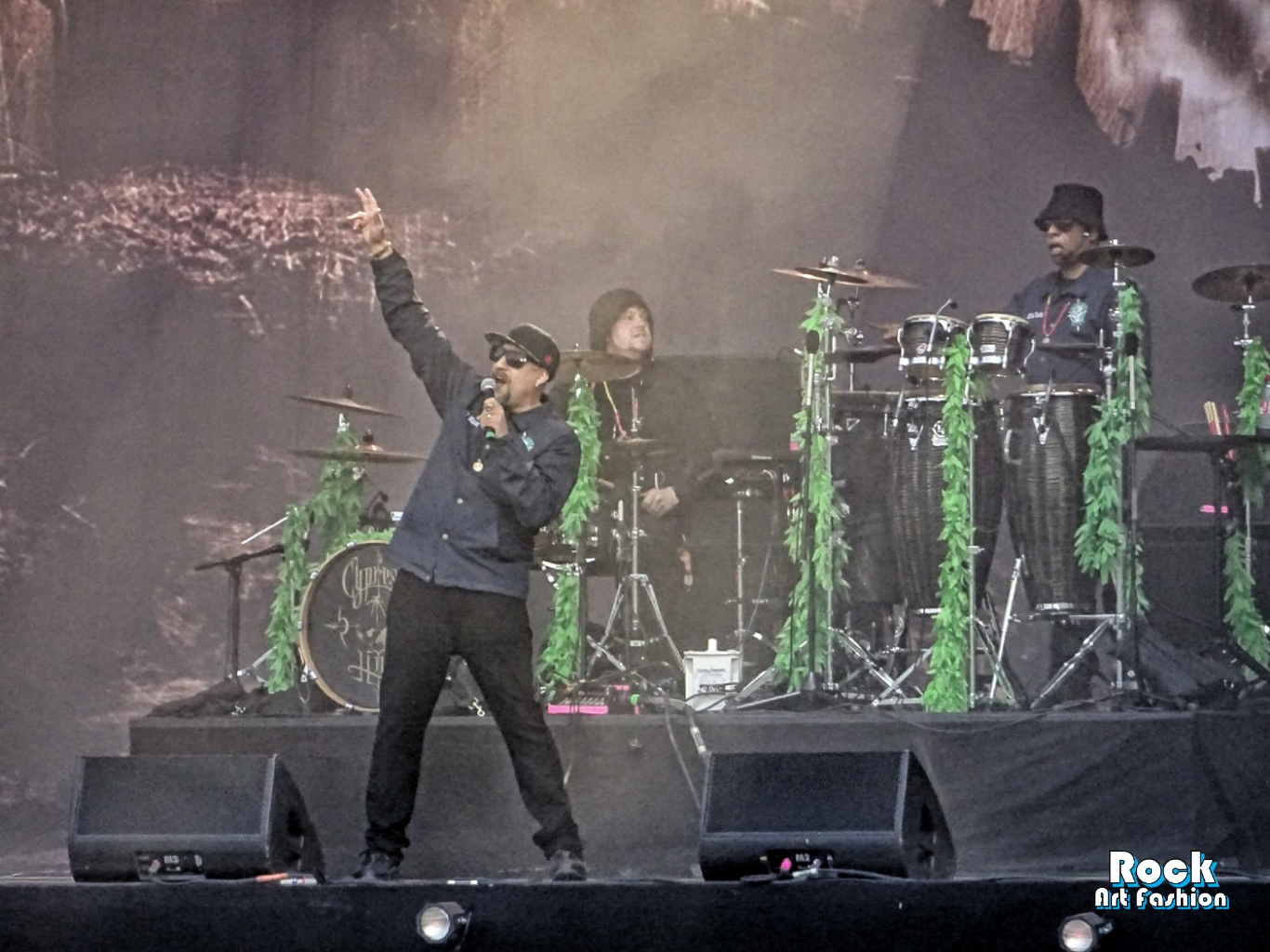 En fin c’est le tour de CYPRESS HILL de monter sur la Grande Scène. Après un excellent warm up performé par DJ LORD, avec un mix de Enter Sandman de Metallica repris en chœur pas des nombreux festivaliers, B-Real, Sen Dog et deux autres musiciens le rejoint et le concert démarre en trombe avec I wanna Get High, le premier morceau du légendaire album Black Sunday sorti en 1993.