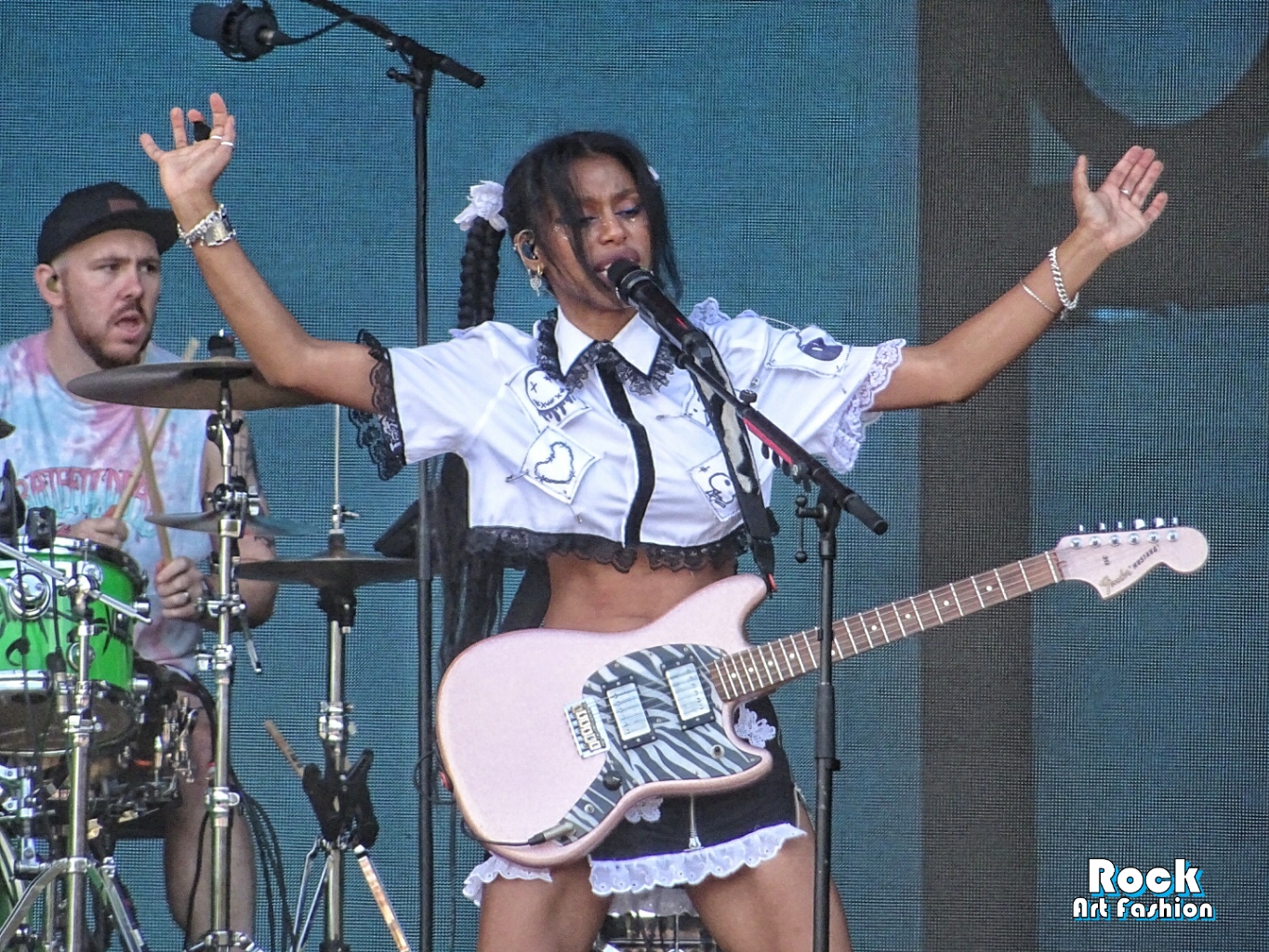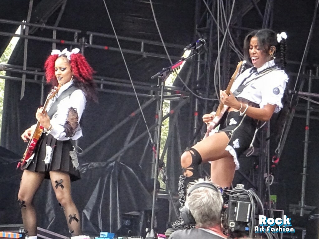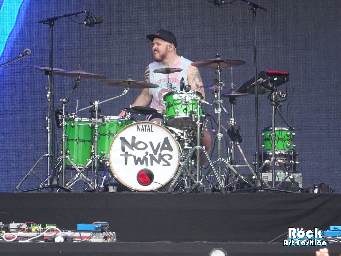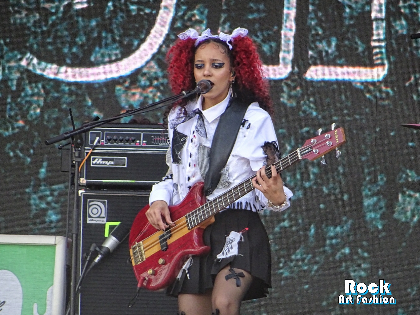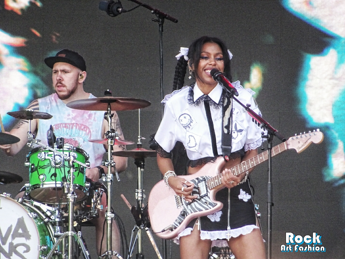 On arrive très tôt pour ne pas rater le Amy Love (chant, guitare) et Georgia South (basse) alias NOVA TWINS qu’on attendait voir sur scène depuis bien longtemps. Le duo londonien accompagné par un batteur délivre un show fracassant avec une présence scénique super énergique, des sonorités punk rock ravageur, riffs hardcore, hip hop abrasif et mélodies accrocheuses.