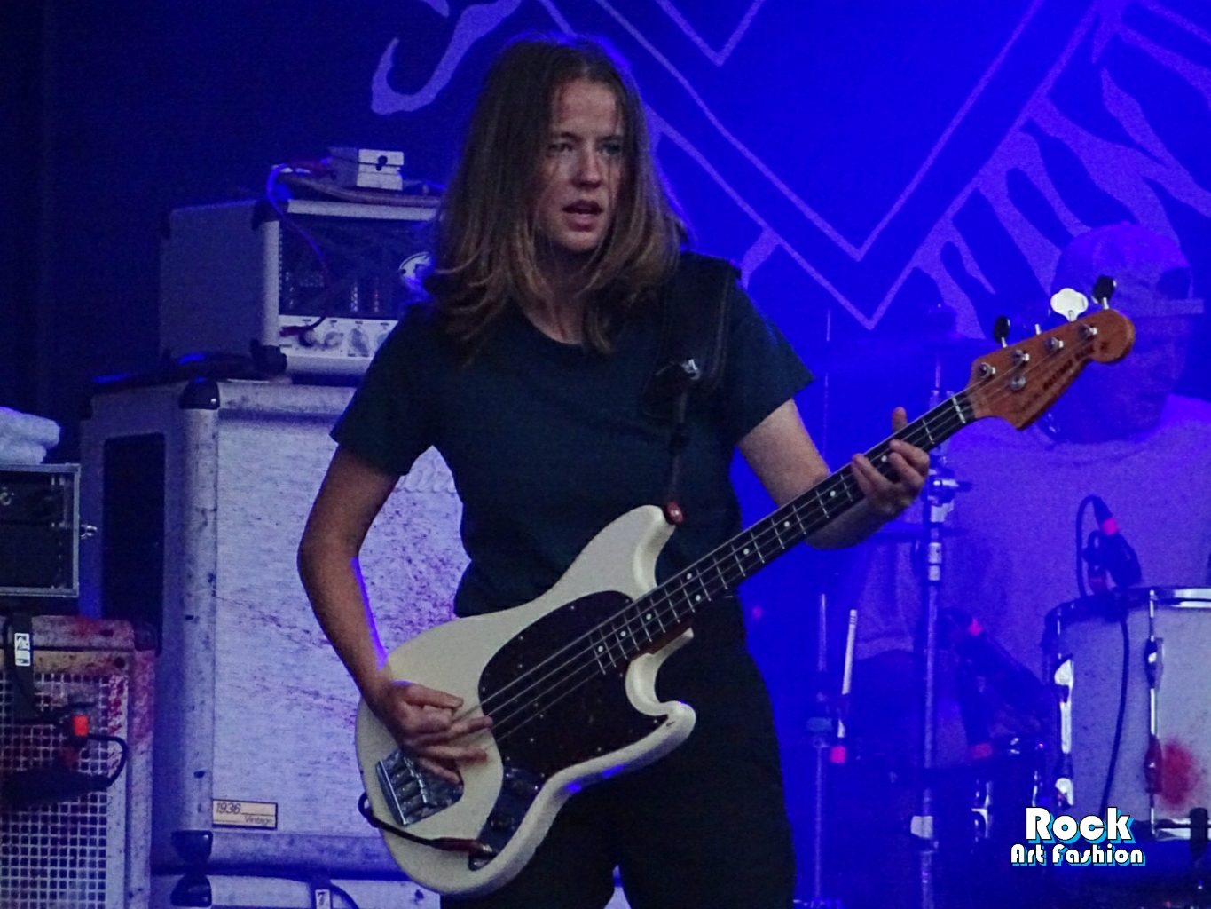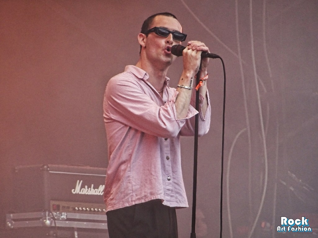 We continue with VIAGRA BOYS and it’s THE REVELATION OF THE DAY! Led by the charismatic Sebastian Murphy shirtless entirely covered in tattoos, the Swedish band offers us a groovy show completely delirious. In addition to the front man and his original and deep way of singing, there is the blond keyboardist in denim shorts straight out of the 80’s, the sexy saxophonist wearing leather mini shorts, the bassist who delights us in his theatrical poses, the guitarist who plays very low with his guitar and the drummer who goes wild behind his drums. Each musician attracts attention in his own way, no one goes unnoticed. With songs full of humour with crazy titles and hilarious lyrics like Ain’t Nice, SPORTS (the singer simply lists the names of the sports), Troglodyte or Research Chemicals it is impossible to stay still.