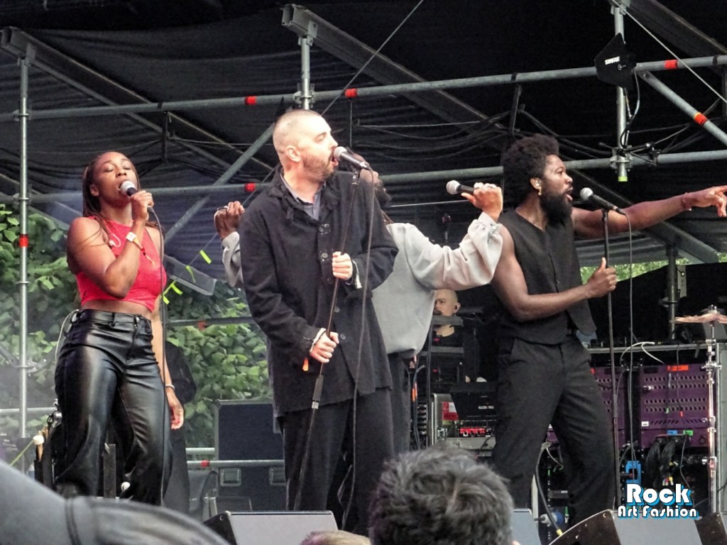 Shortly before the end we leave the Main Stage to head to the Scene du Bosquet to discover Young Fathers. Tribal rhythms, catchy songs, talented musicians who pass the microphone in turn, the audience appreciates and moves happily. But as the weather forecast announced, in this late afternoon the rain begins to fall over Rock En Seine.