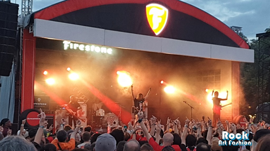 Chant hurlé (en français), guitares brulantes, rhythmique infernale, c’est décidément le show le plus énervé de la journée (voir du festival). Les fans venus très nombreux devant la Scène Firestone pogotent avec ferveur, head banging à fond, il ya même un wall of death qui se forme. On se croirait à Hellfest !