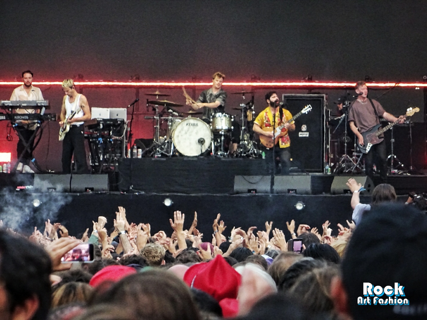 We take refuge under the trees like most festival-goers and we will follow from afar the end of the show, without being able to go see a little Wet Leg performing on the stage of the Cascade. But the rain will stop quickly without doing any damage and everyone seems ready for FOALS because the space in front of the Grande Scene is downright stormed by fans of the English band.
