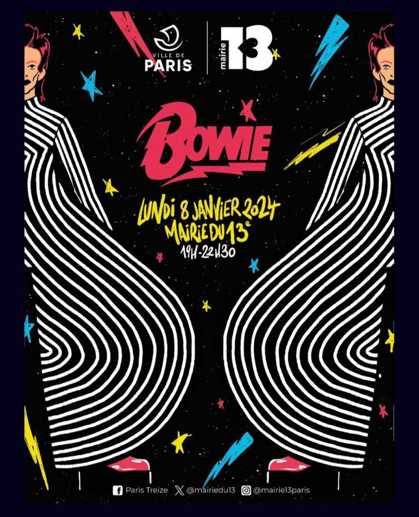 Aujourd’hui a lieu l’inauguration officielle de la rue David Bowie, dans le 13e arrondissement de Paris (au niveau du 61, avenue Pierre Mendès France) suivi d’une soirée exceptionnelle en hommage à David Bowie qui se déroulera dès 19h dans la salle des fêtes de la Mairie du 13e. Animée par Jérôme Soligny, ami et biographe de l’artiste, avec de nombreux invités et un concert de Clifford Slapper.