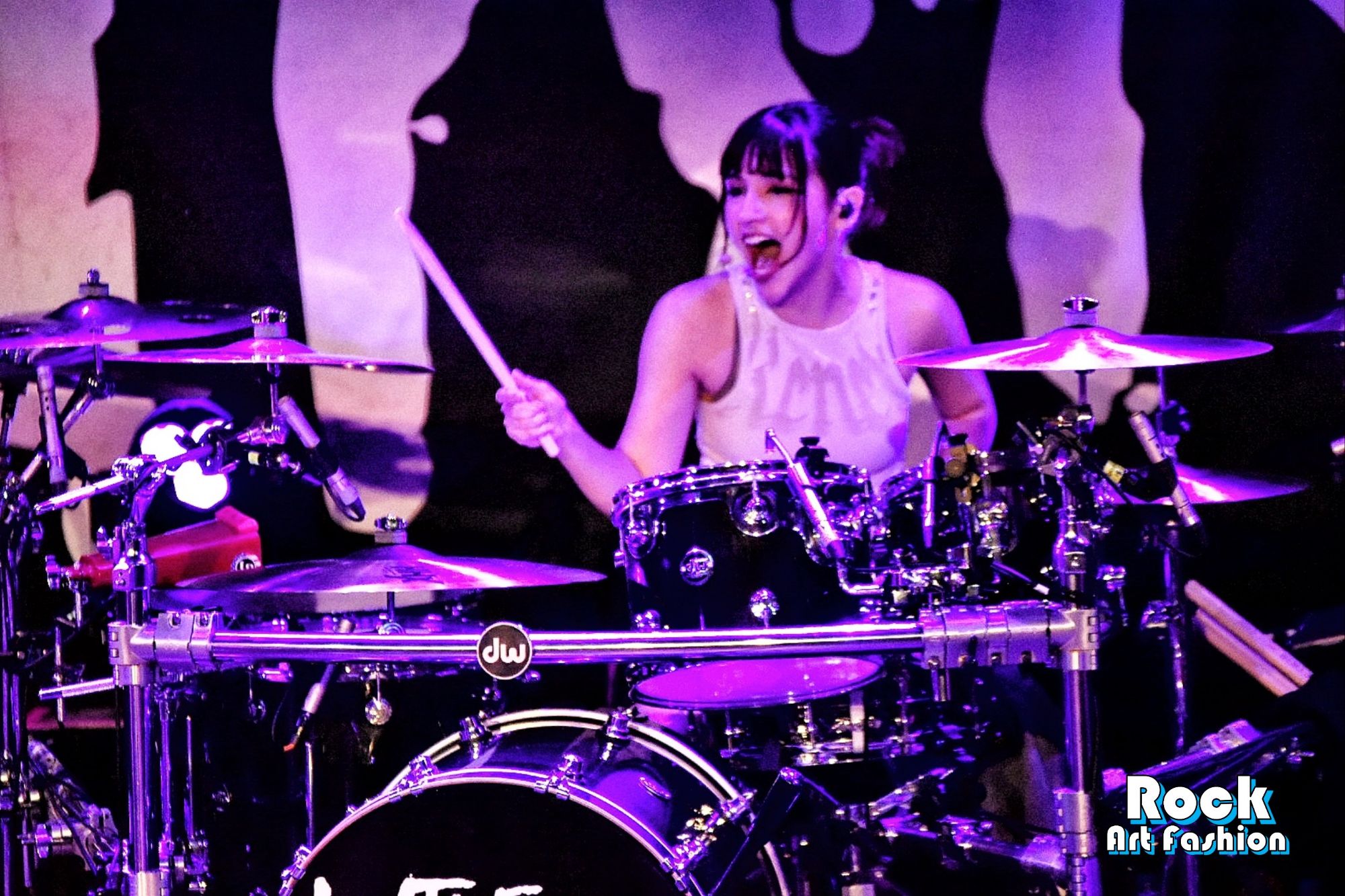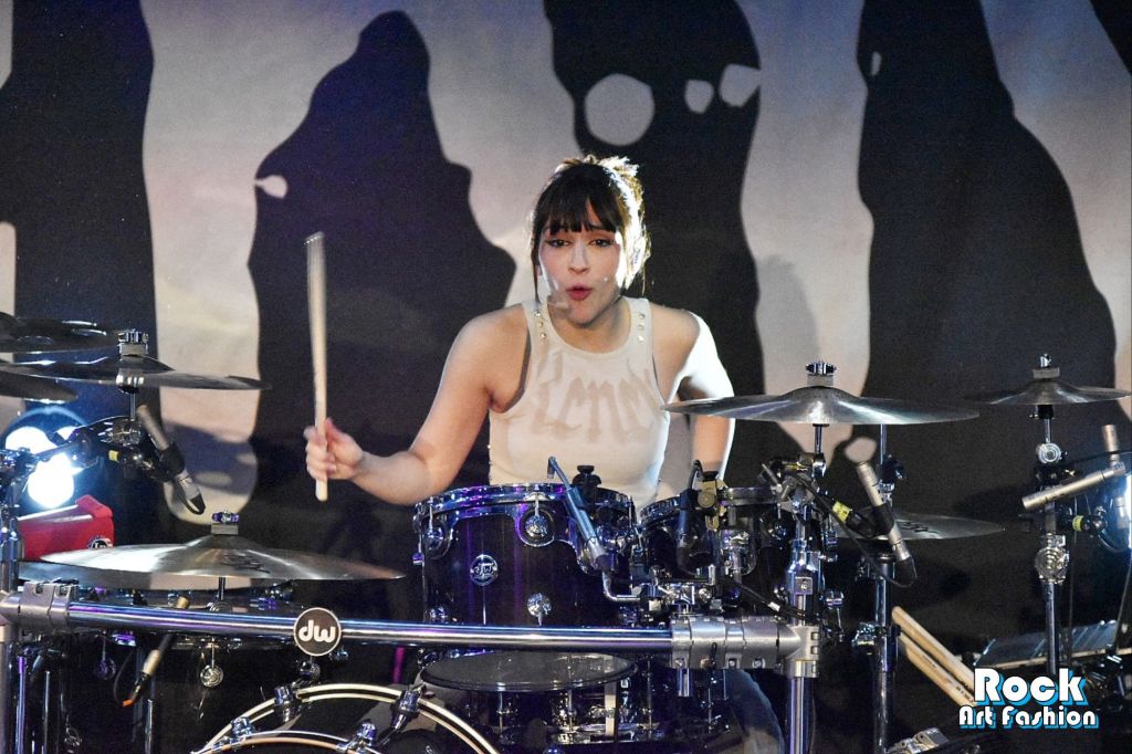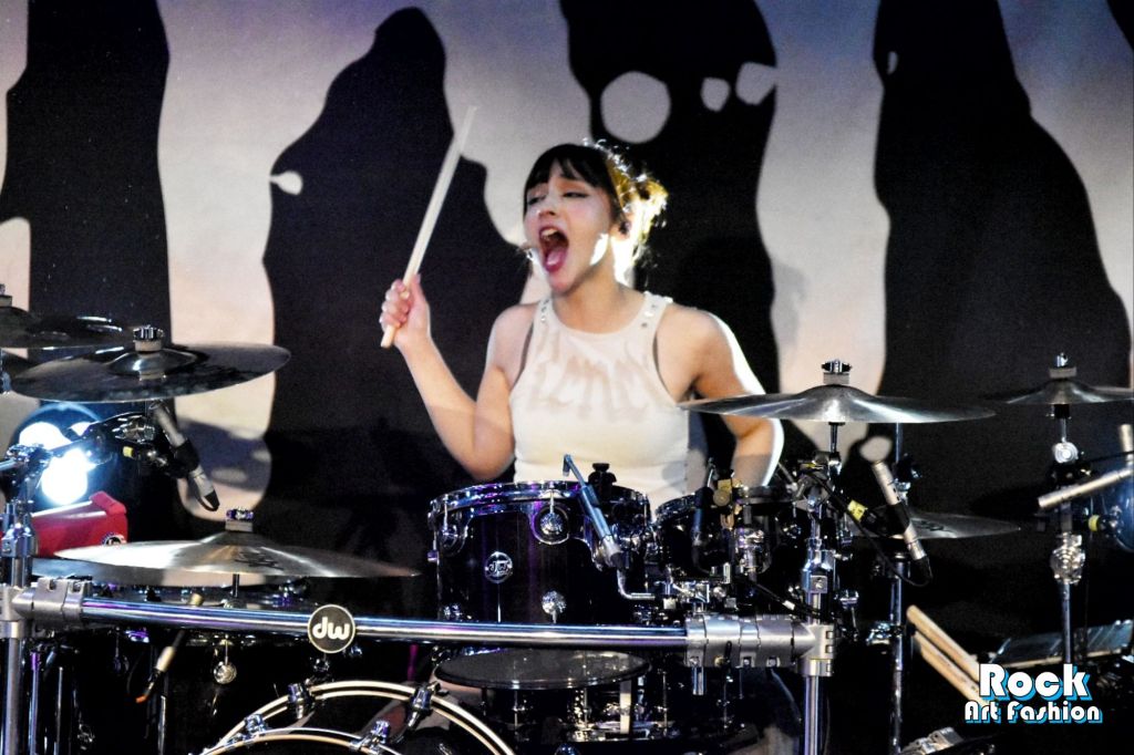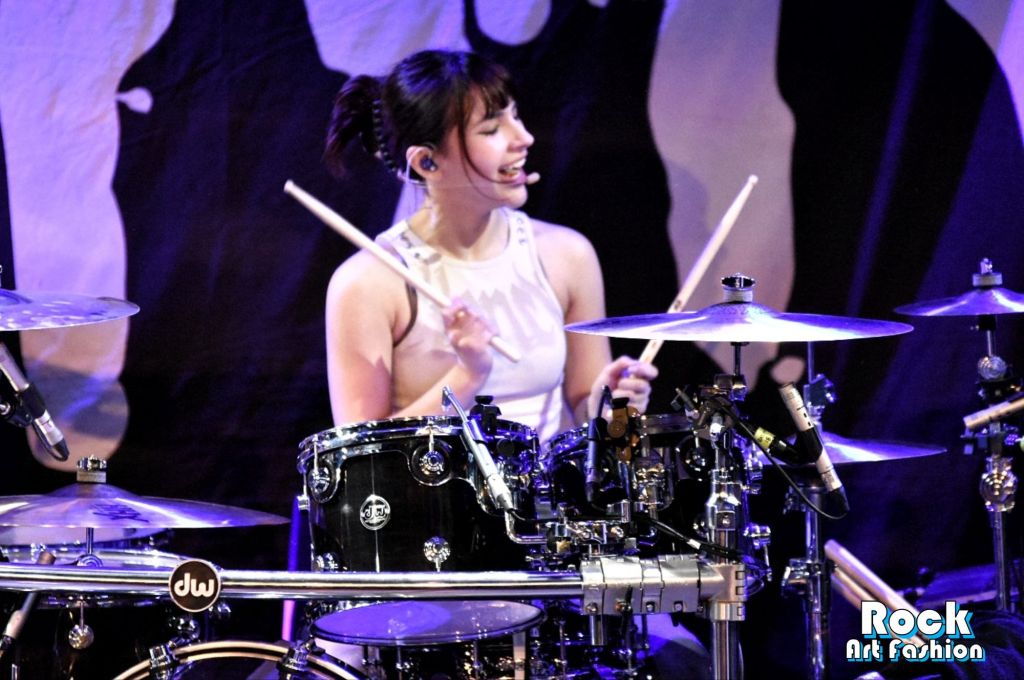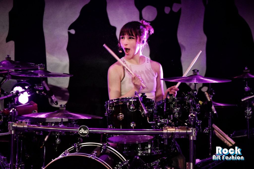 Paulina, véritable force de la nature délivre une performance impressionnante à la batterie. Elle exécute ses frappes avec une énorme dextérité, tout en chantant à plein poumons. Extrêmement charismatique, elle se connecte parfaitement à la foule même en étant à moitié caché derrière son kit.