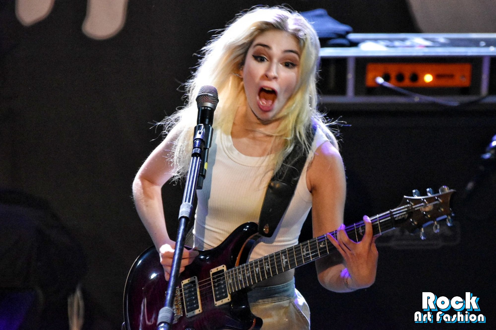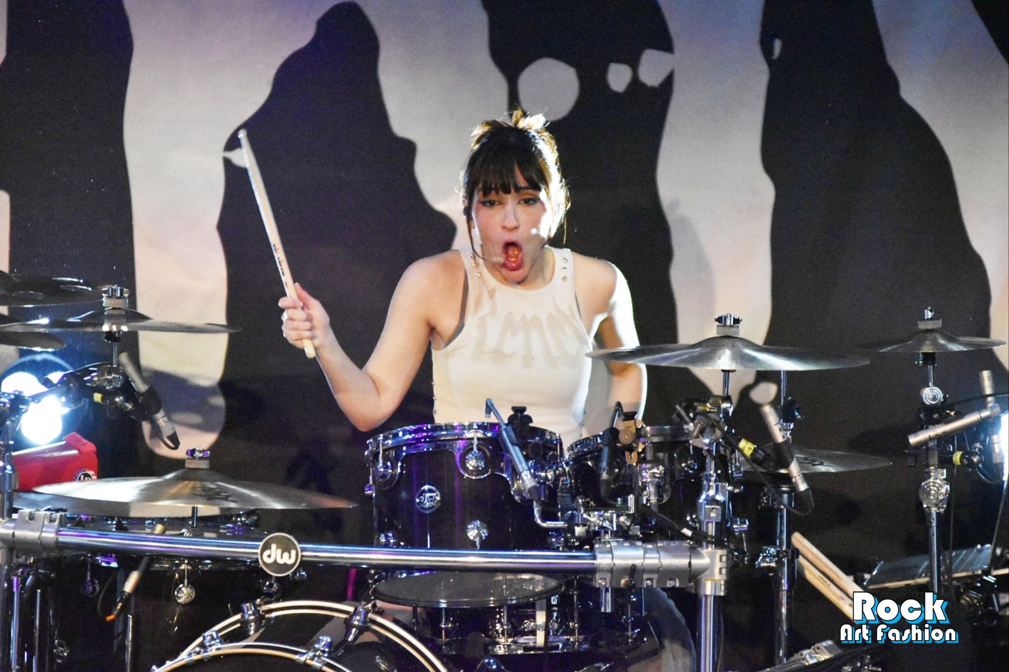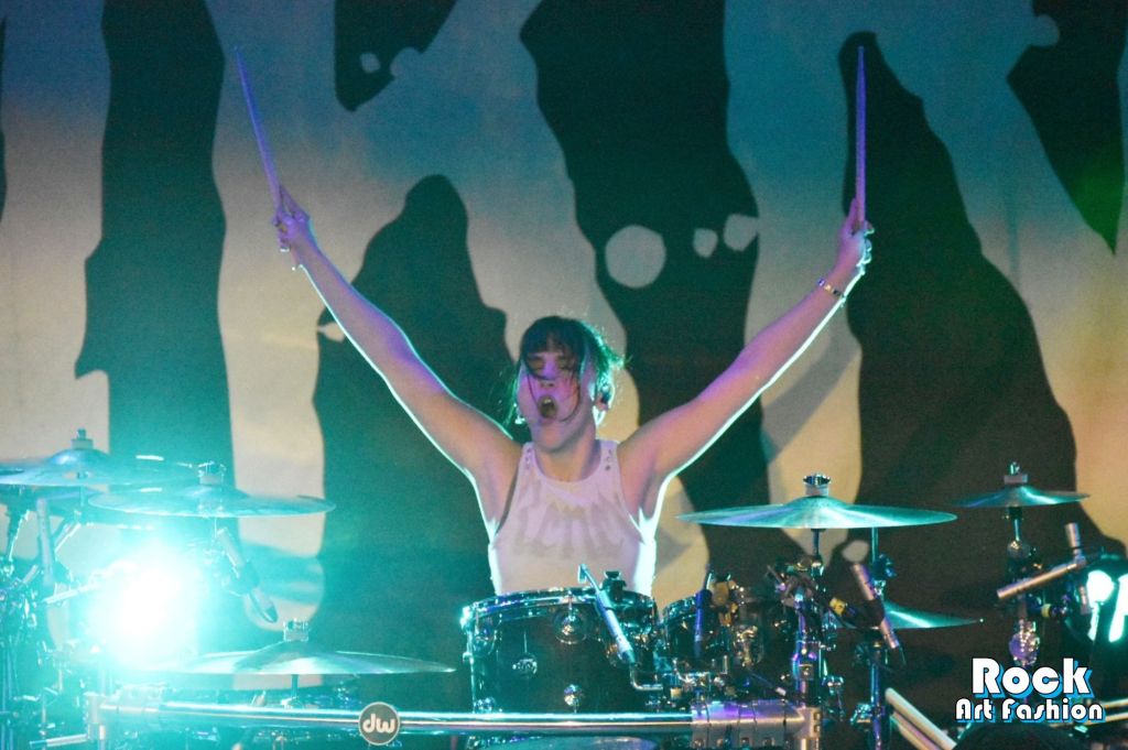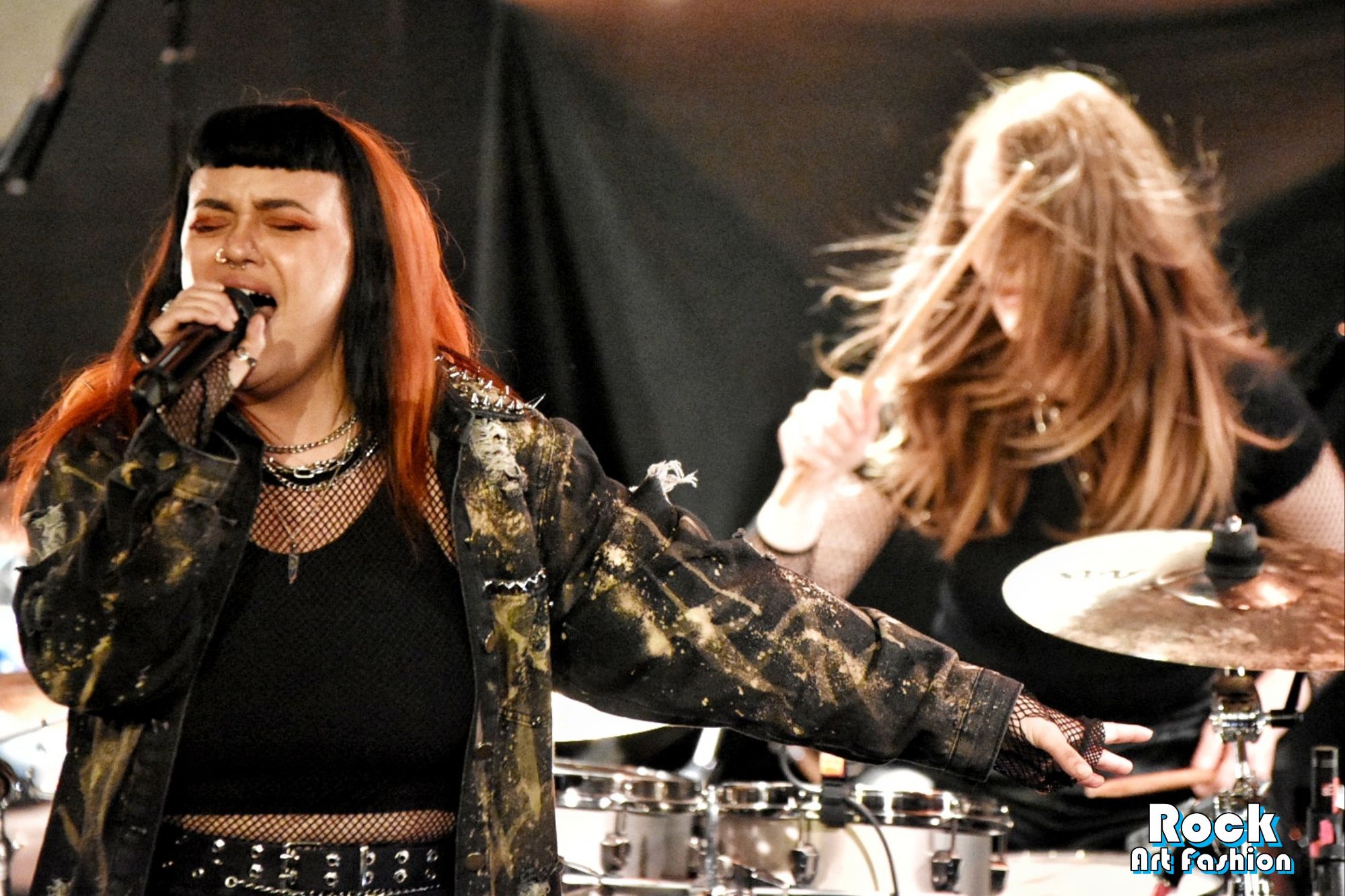 Paulina, véritable force de la nature délivre une performance impressionnante à la batterie. Elle exécute ses frappes avec une énorme dextérité, tout en chantant à plein poumons. Extrêmement charismatique, elle se connecte parfaitement à la foule même en étant à moitié caché derrière son kit.