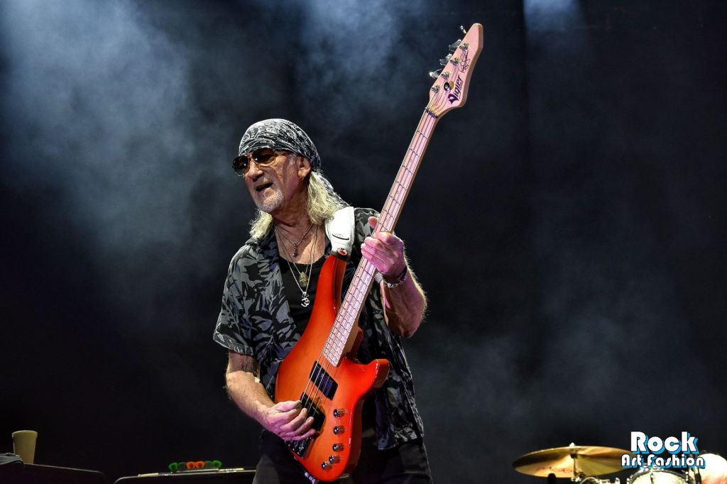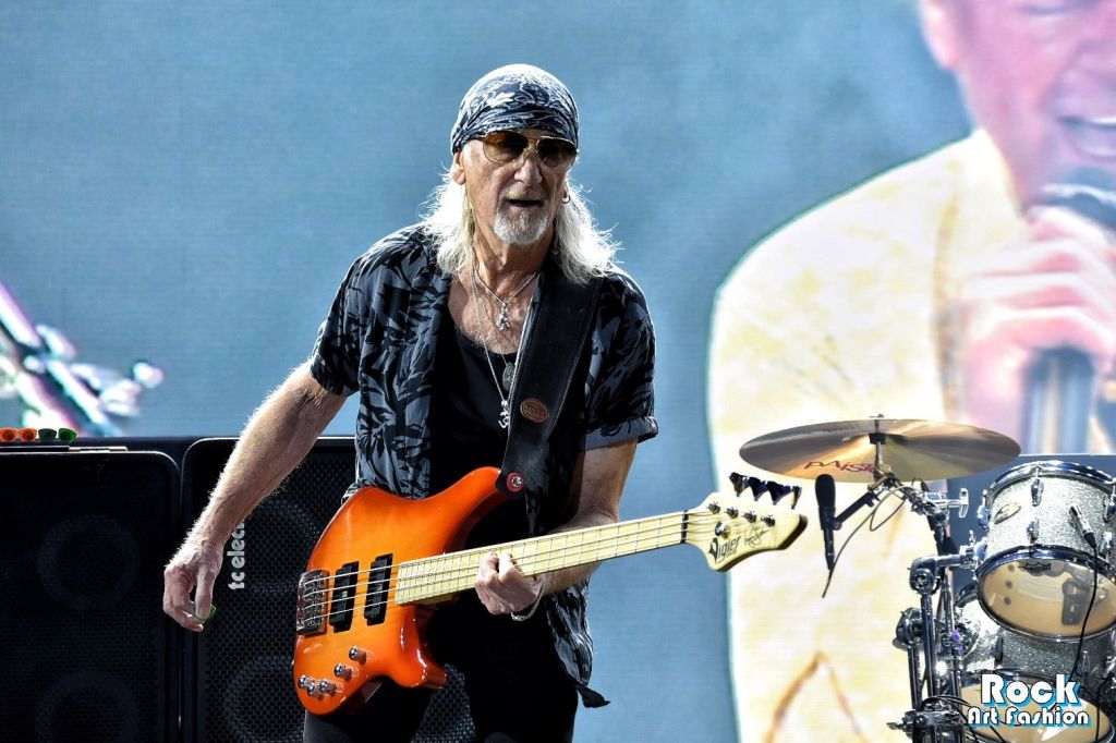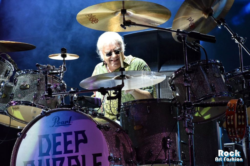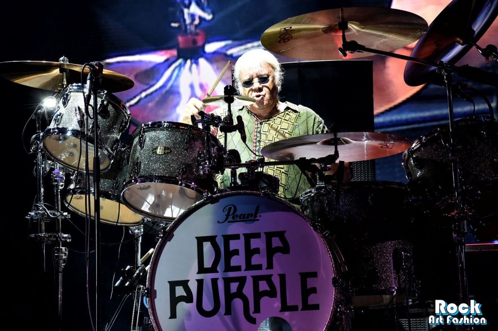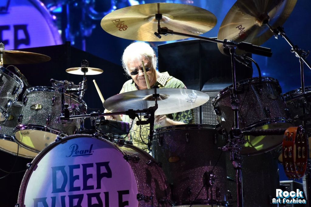 Changement de registre avec les vétérans de DEEP PURPLE. La nuit commence à tomber doucement quand l’écran géant en fond de scène diffuse une animation qui dessine le logo du groupe. Le moment est en fin venu pour mettre la couleur pourpre à l’honneur.