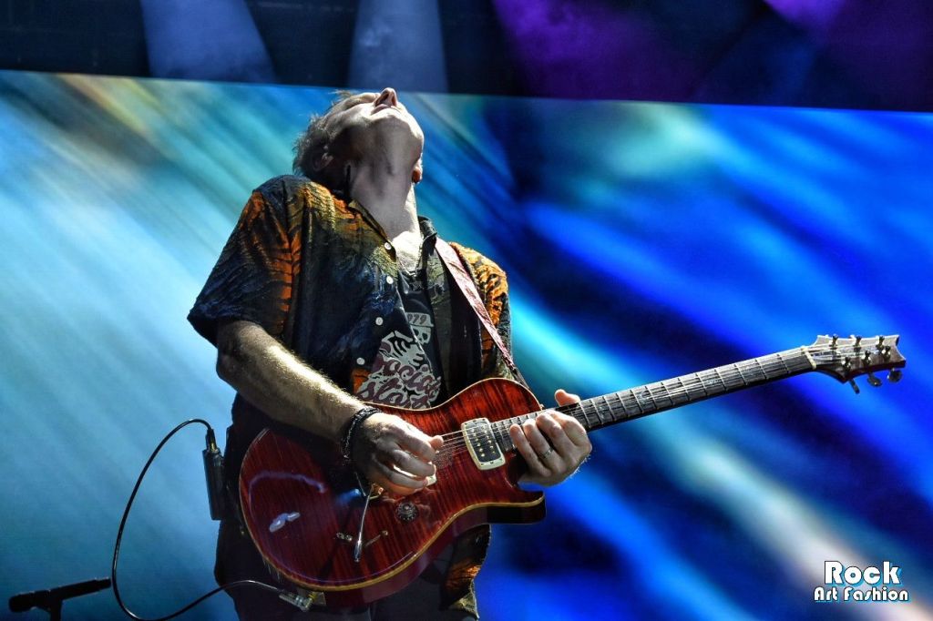 Il ne manquerait pas de nous présenter ses fidèles acolytes : James LoMenzo, de retour au sein du groupe depuis le 2021, qui martèle sa basse à coups de headbanging, Dick Verbeuren déchainé derrière se futs frappe avec puissance et nous fait de larges sourires et surtout le nouveau guitariste arrivé en 2023, Teemu Mäntysaari, qui semble déjà bien intégré dans le groupe et se livre à des solos accrocheurs.