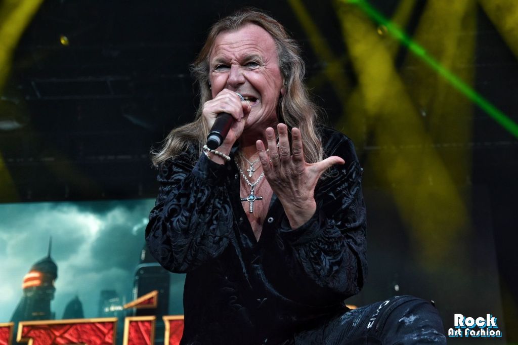 Quant à Ian Gillan, la voix est toujours aussi belle, chaude et mélodique. Même s’il n’est pas très dynamique, il se déplace sur toute la scène et encourage le public. Le chanteur profite de passages instrumentaux (un peu trop longues parfois) pour se reposer en pénombre, entre la batterie et les claviers.
