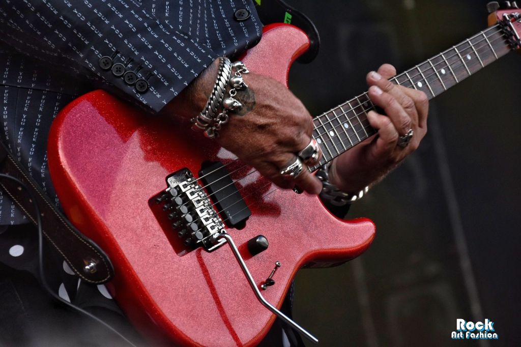 Premier point mode du festival : on remarque rapidement l’élégance et classe du groupe scandinave : des chemises fluides, des vestes, des chapeaux et des jolis accessoires. Pour l’instant le prix de l’élégance est attribué à Pretty Maids !