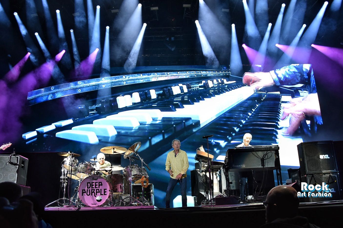 Change of register with the veterans of DEEP PURPLE. Night begins to fall slowly when the giant screen at the back of the stage broadcasts an animation that draws the band’s logo.