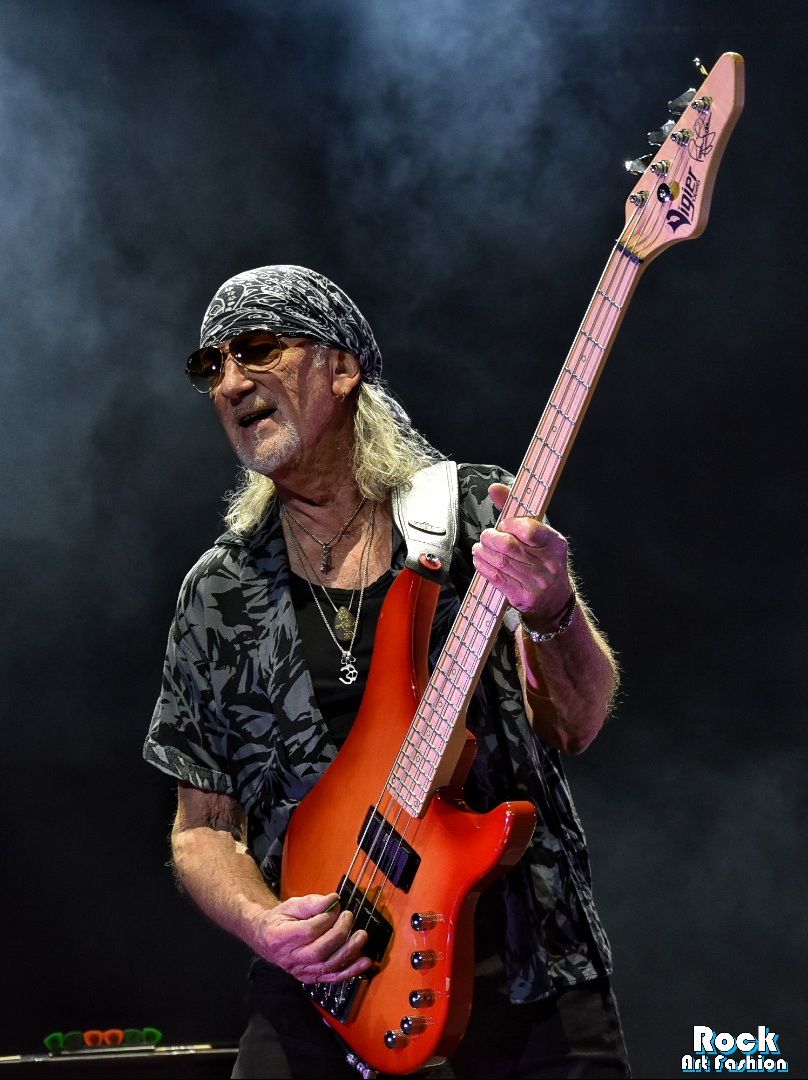Quant à Ian Gillan, la voix est toujours aussi belle, chaude et mélodique. Même s’il n’est pas très dynamique, il se déplace sur toute la scène et encourage le public. Le chanteur profite de passages instrumentaux (un peu trop longues parfois) pour se reposer en pénombre, entre la batterie et les claviers.