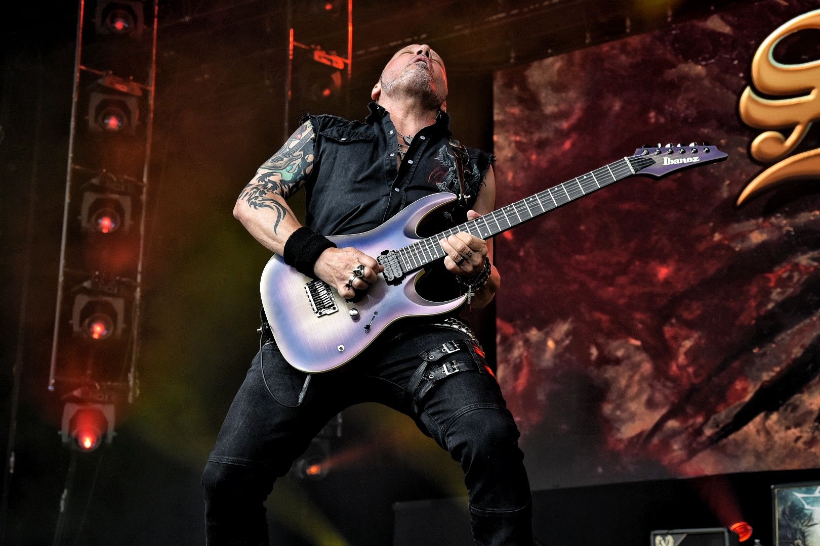 Changement de registre avec les vétérans de DEEP PURPLE. La nuit commence à tomber doucement quand l’écran géant en fond de scène diffuse une animation qui dessine le logo du groupe. Le moment est en fin venu pour mettre la couleur pourpre à l’honneur.
